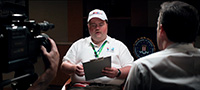 И он совершенно потрясающий! Инфантильный, странноватый и нелепый пухлячок, который играет в видеоигры - тренируется, чтобы стать спецагентом, одержимый маниакальным стремлением соблюдать всевозможные законы и инструкции, требующий от остальных такого же неукоснительного соблюдения. Обрушившуюся на него славу он воспринял очень мило, никакую звезду из себя не строил. Когда его стали допрашивать в ФБР, он с готовностью шел им навстречу и сотрудничал во всем: ну как же, это же ФБР, олицетворение закона и порядка!