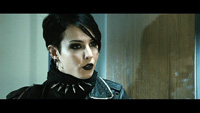 Очень интересна личность этой весьма своеобразной девушки - Лисбет Саландер. Если Блумквист в исполнении Микаэла Нюквиста - просто эдакий трудяга-журналист, то Лисбет - это что-то с чем-то! Трагичное детство, подонок и садист опекун - понятно, что психика девушки подверглась серьезным испытаниям и это оставило свой заметный след. Она выглядит эдаким затравленным зверьком, готовым в любой момент укусить. При этом Лисбет обладает фотографической памятью и острым аналитическим умом, ну и также является очень продвинутым хакером, что ей помогает в работе.
