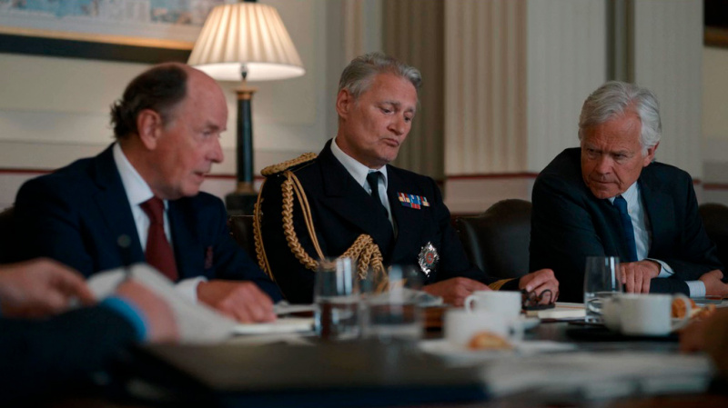 Премьер-министра - популиста и человека, склонного к резким и необдуманным решениям, - сыграл Рори Киннер (я его видел в хорошем британском сериале "Годы"). Сыграл хорошо: персонаж получился хотя и слегка карикатурный (очевидно, что сценаристы вдохновлялись личностью Бориса Джонсона), но неоднозначный.