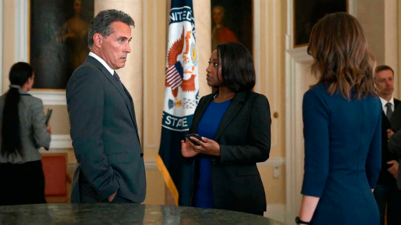 Кроме того, Кейт в качестве советника будет сопровождать ее муж Хэл Уайлер (Руфус Сьюэлл) - многоопытный и очень влиятельный дипломат, который к тому же какое-то время назад сам был американским послом в Великобритании.