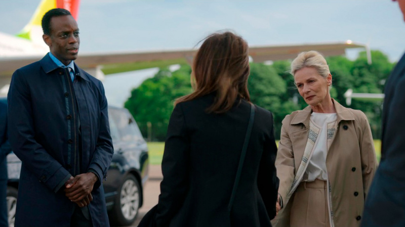 Кстати, в сериале "Годы" жену персонажа Киннера сыграла интересная актриса сенегальского происхождения Т’Ниа Миллер: она здесь также играет - сестру министра иностранных дел. Роль у нее небольшая, но очень заметная.