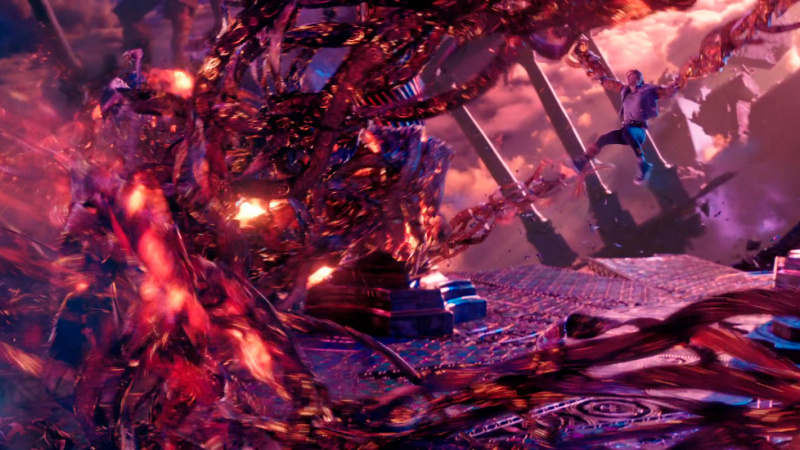 Что у них из всего этого получилось? Чистым продолжением первого "Доктора Стрэнджа" данный фильм не является: он снят несколько в ином стиле, он содержит определенные элементы хоррора и ужастика, и это, наверное, самый страшный фильм "Киновселенной Marvel". К тому же, что интересно, главным антагонистом в нем стала Ванда Максимофф, она же Алая Ведьма, и ее персонажу здесь посвящено, наверное, не меньше времени, чем персонажу Стрэнджа. То есть тут даже не очень понятно: это вообще продолжение сольного выхода Стрэнджа или это и вовсе первый полнометражный сольник Алой Ведьмы?!