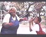 Разумеется, Малькольма как Большую Маму несколько раз ставили в довольно трудные ситуации: заставляли заниматься карате (он при этом навалял люлей тренеру), играть в баскетбол с сыном Шерри (он, как водится, в своем жирном теле изобразил весь "Гарлем Глобб Троттер" в одной заднице... пардон, в одном лице), ну и так далее.