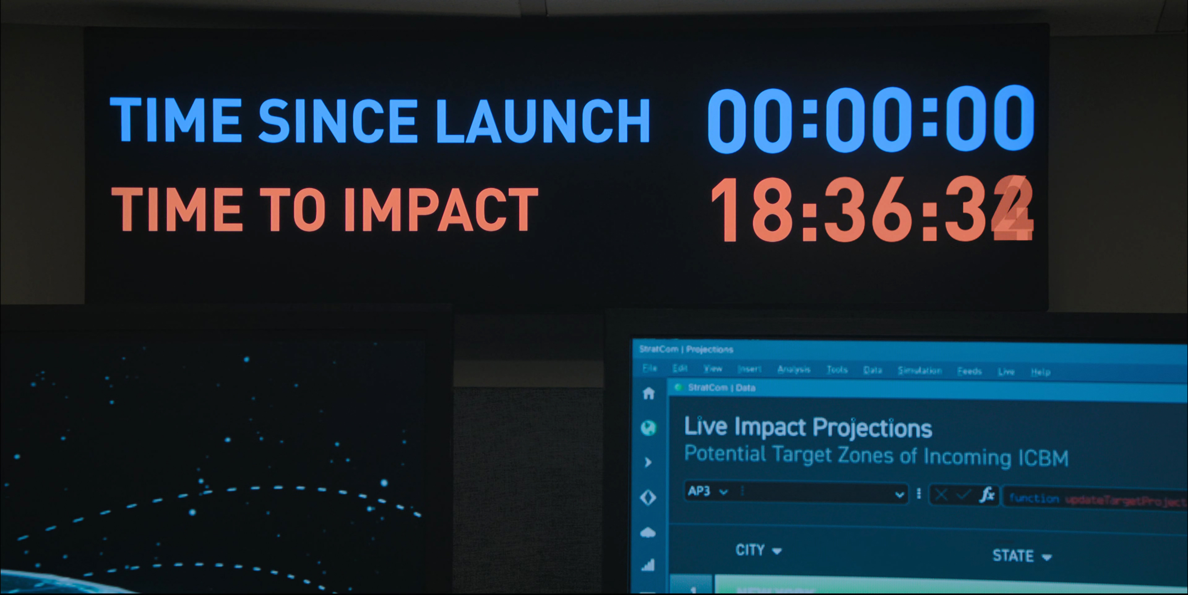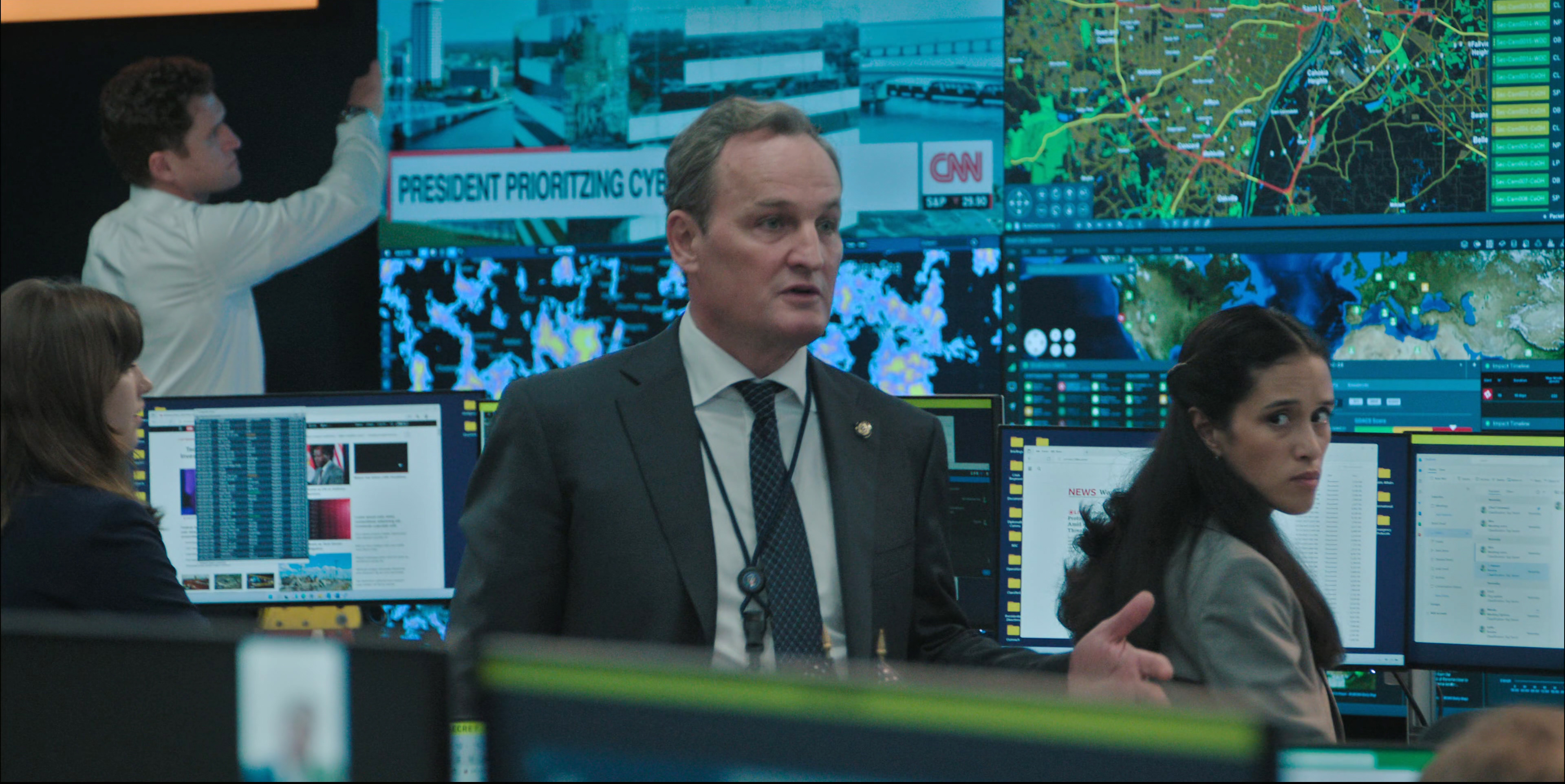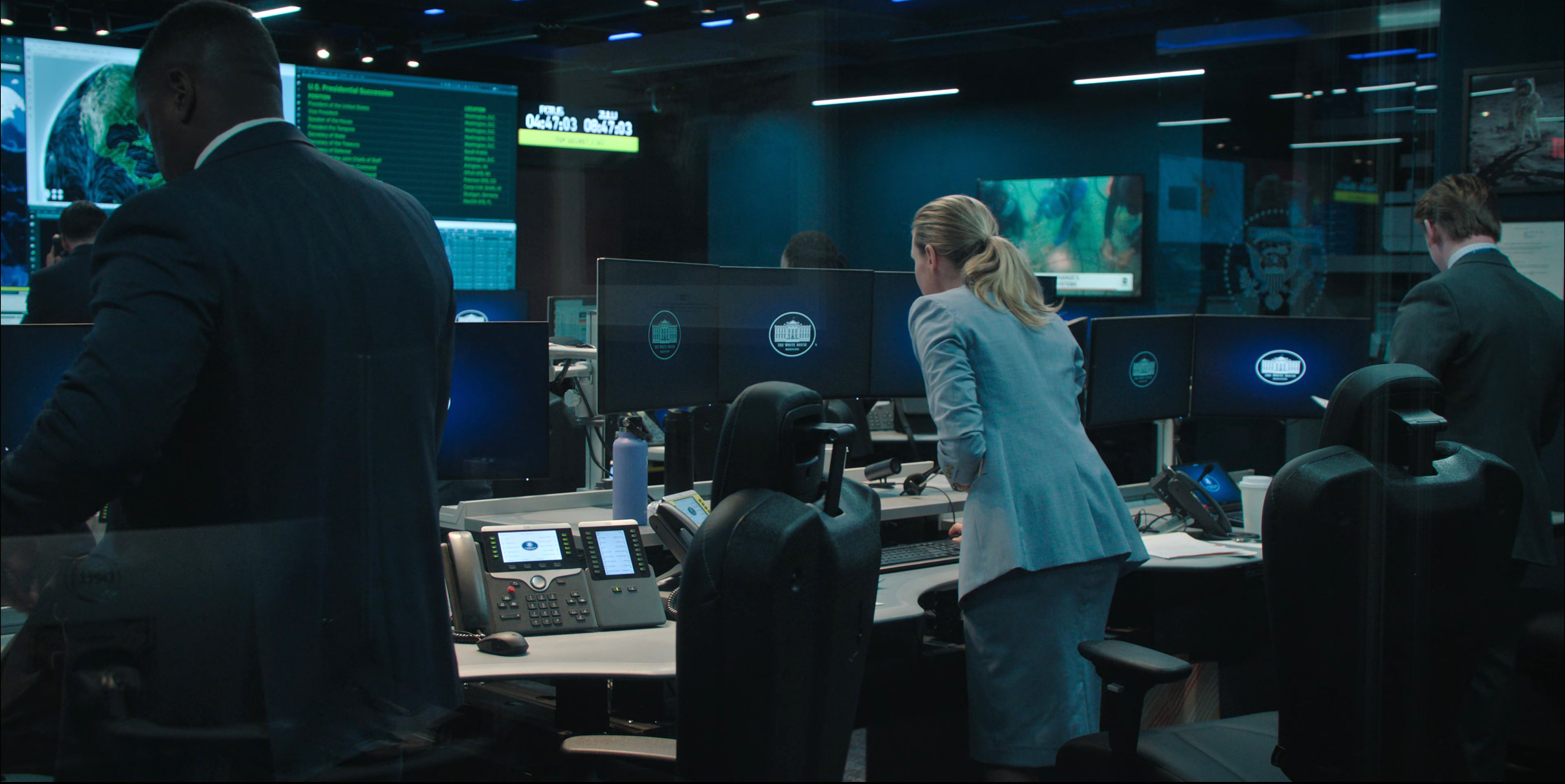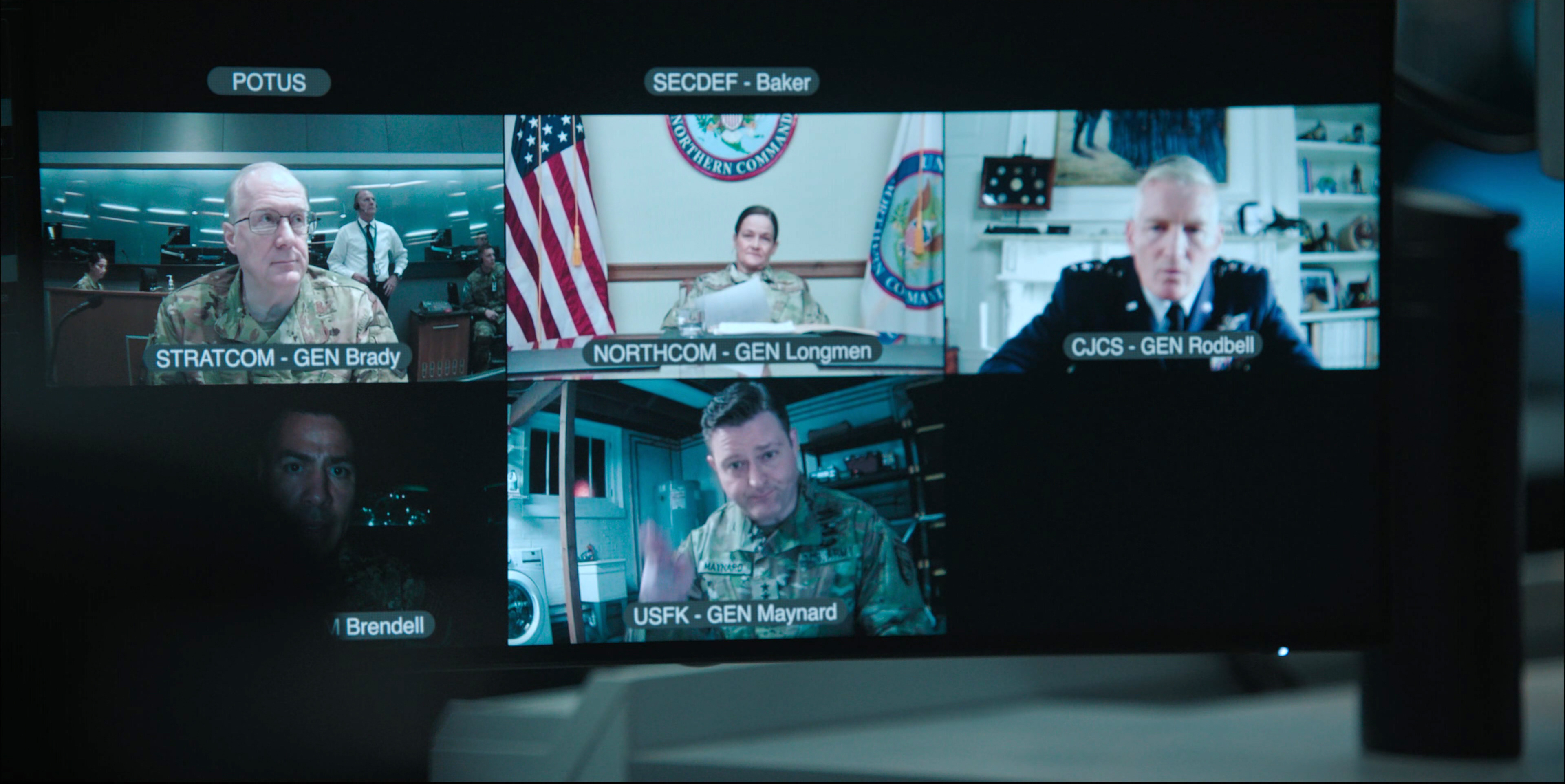 Здесь мы видим эти двадцать минут с точек зрения Оливии Уолкер и Дэвида Гонсалеса, затем нам показывают Стратегическое командование США, где генерал Энтони Брэди (Трейси Леттс) планирует координированную атаку на врагов США - разумеется, это КНР, КНДР и РФ, - если не будет выяснено, кто именно запустил ракету; в это же время в Белом доме заместитель советника по национальной безопасности (сам советник временно вышел из строя) Джейк Берингтон (Габриэль Бассо) пытается найти более мирное решение, ну и также нам покажут подробности того, как на это все реагировал Министр обороны США Рид Бэйкер (Джаред Харрис), и Президент США, чье имя в фильме ни разу не называется - в селекторном совещании он фигурирует под аббревиатурой POTUS (President of the United States), и в совещании по Zoom он присутствует только в виде голоса без видео.