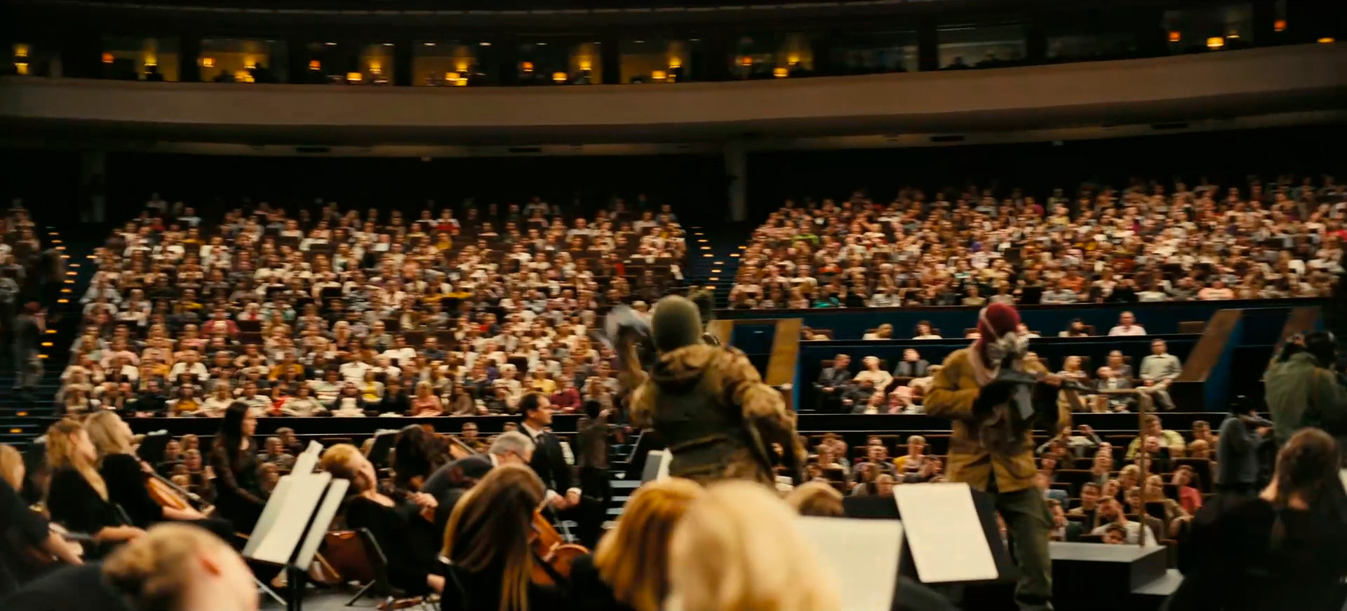 По сценам. Я наоборот, лучше сценой считаю захват заложников в опере в самом начале. Да, явная аналогия с Норд-Остом. Но! Сделано же очень напряженно! Я помню ходил летом на какой то другой фильм, и там перед тем фильмом в качестве трейлера крутили эту трехминутную сцену захвата и освобождения заложников. И мне так зашло это тогда. Я к концу второй минуты уже не мог дышать от напряжения. Реально! Музыкальный трек еще подобран идеально, также добавляет напряженности. И также понравилась сцена второго прохода через турникет в виде инвертированных. Тут прям очень не плохо.