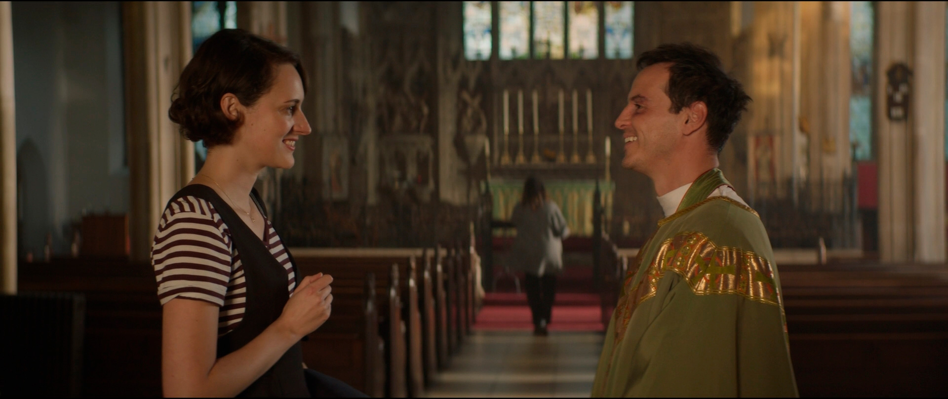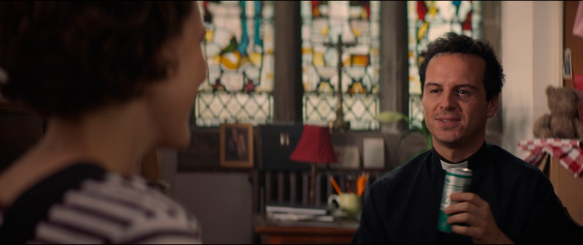 Священника играет Эндрю Скотт (Мориарти из сериала "Шерлок"), и он тут просто невероятно хорош! Настолько хорош, что даже перетягивает на себя зрительское внимание от Фиби Уоллер-Бридж. И практически весь второй сезон посвящен их взаиимоотношениям: интересным, тонким и в чем-то трогательным. Тем более что будущего у этих взаимоотношений быть не могло: священник сразу однозначно давал понять, что главное для него - это религия.
