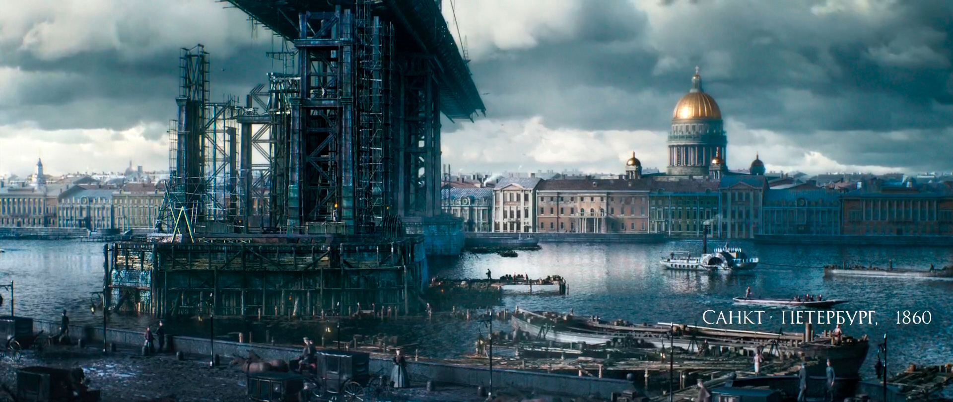 >>Питер тех времен сделан в стиле "недавно было наводнение, поэтому вокруг вода, полуголые люди что-то строят и плавают на лодках, а дождина льет не переставая".