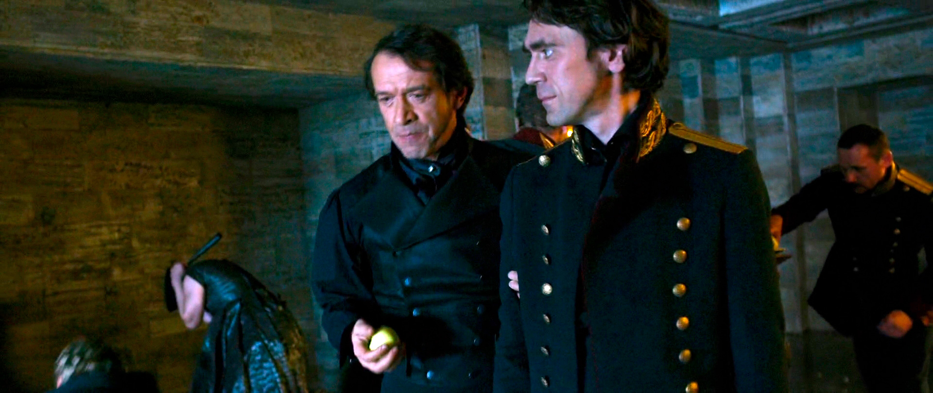 Это про Толстого-Американца, образом которого явно вдохновлялся режиссер Мизгирев. Потому что именно про Толстого и приятеля его Нарышкина рассказывали ту историю, которая показана в фильме. Это когда Колычев, Тучков и немец играют в карты, после чего Тучкову делают предъяву и даже угрожают пристрелить на месте. В ответ Тучков, который как бы и боится, все же отвечает, что в карманах у него сущая мелочь и, убив его, злодеи-дуэлисты много не выиграют, а вот полиции, чтобы отмазаться, им придется заплатить во много раз больше. Именно эти слова, как рассказывают, произнес корнет Нарышкин в ответ на угрозу Толстого-Американца немедленно пристрелить его за карточным столом, когда Нарышкин обвинил Американца в том, что тот передергивает. Отсюда же, вероятно, и Аляска, на которую Толстой, правда, сослан не был, а всего лишь был высажен там кругосветной экспедицией Крузенштерна, когда его поведение окончательно достало всех господ офицеров.