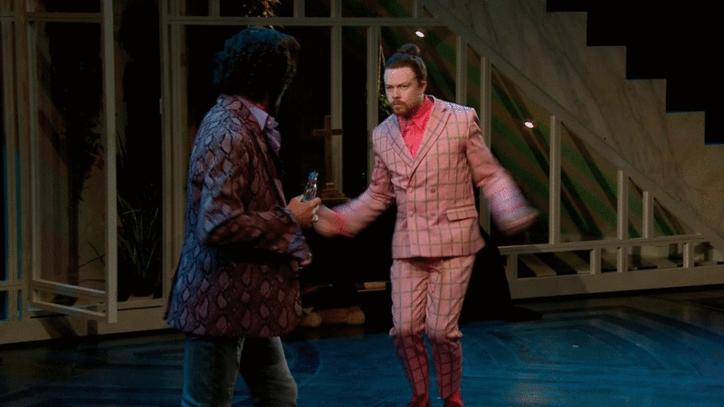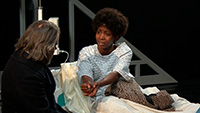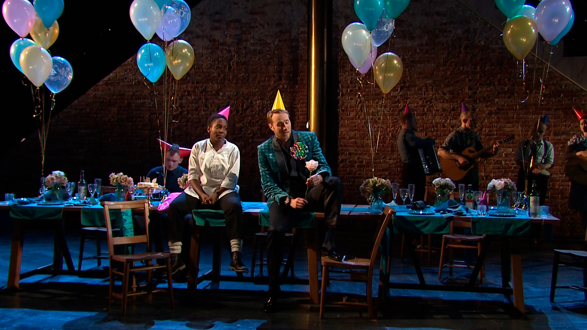 Виола с Себастьяном - вовсе не близнецы (разве что оба - чернокожие) и, скажем честно, вообще не похожи, но этим никто не парится (и правильно делают) - это же театр, друзья, условность, да и сюжет пьесы всем прекрасно известен. Мы же знаем, что Оливия примет Себастьяна за Цезарио - ну и пускай принимает, на здоровье!