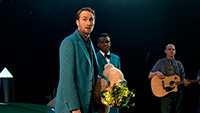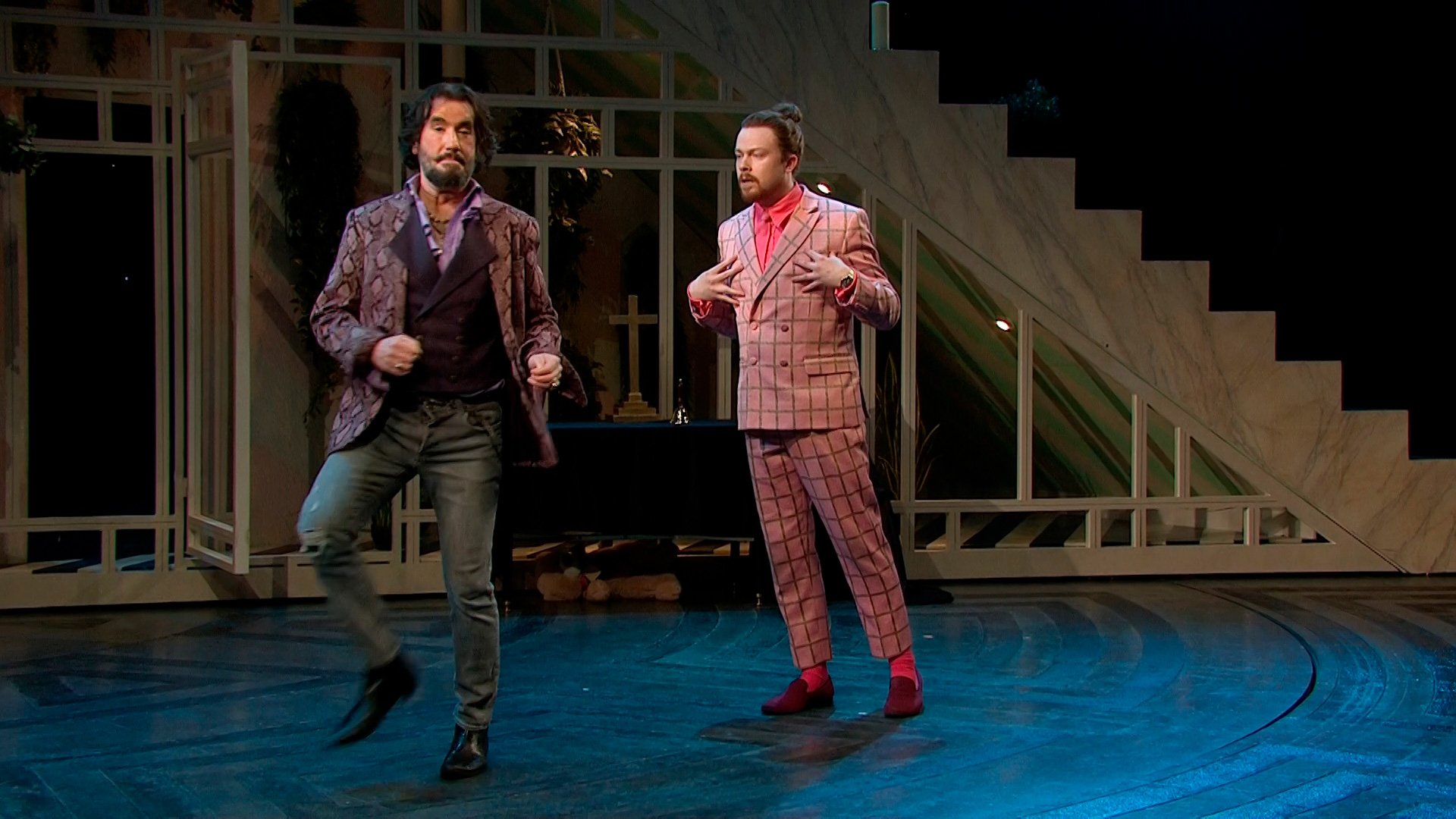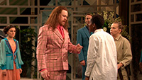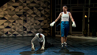 Тим МакМаллен и Дэниел Ригби совершенно самозабвенно оттягиваются в ролях двух свинячащих сэров - Тоби и Эндрю. В постановках именно эти персонажи обычно наиболее любимы зрителями, и МакМаллен с Ригби из этих ролей выжали все, что могли, - получилось просто классно. И им отличную компанию составляла фрейлина Оливии Мария, которую сыграла Ники Уордли. А вот Фабиа в исполнении Имоджен Доэл мне не понравилась: как-то она на фоне дуэта МакМаллена - Ригби смотрелась, на мой взгляд, слабовато.