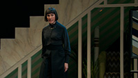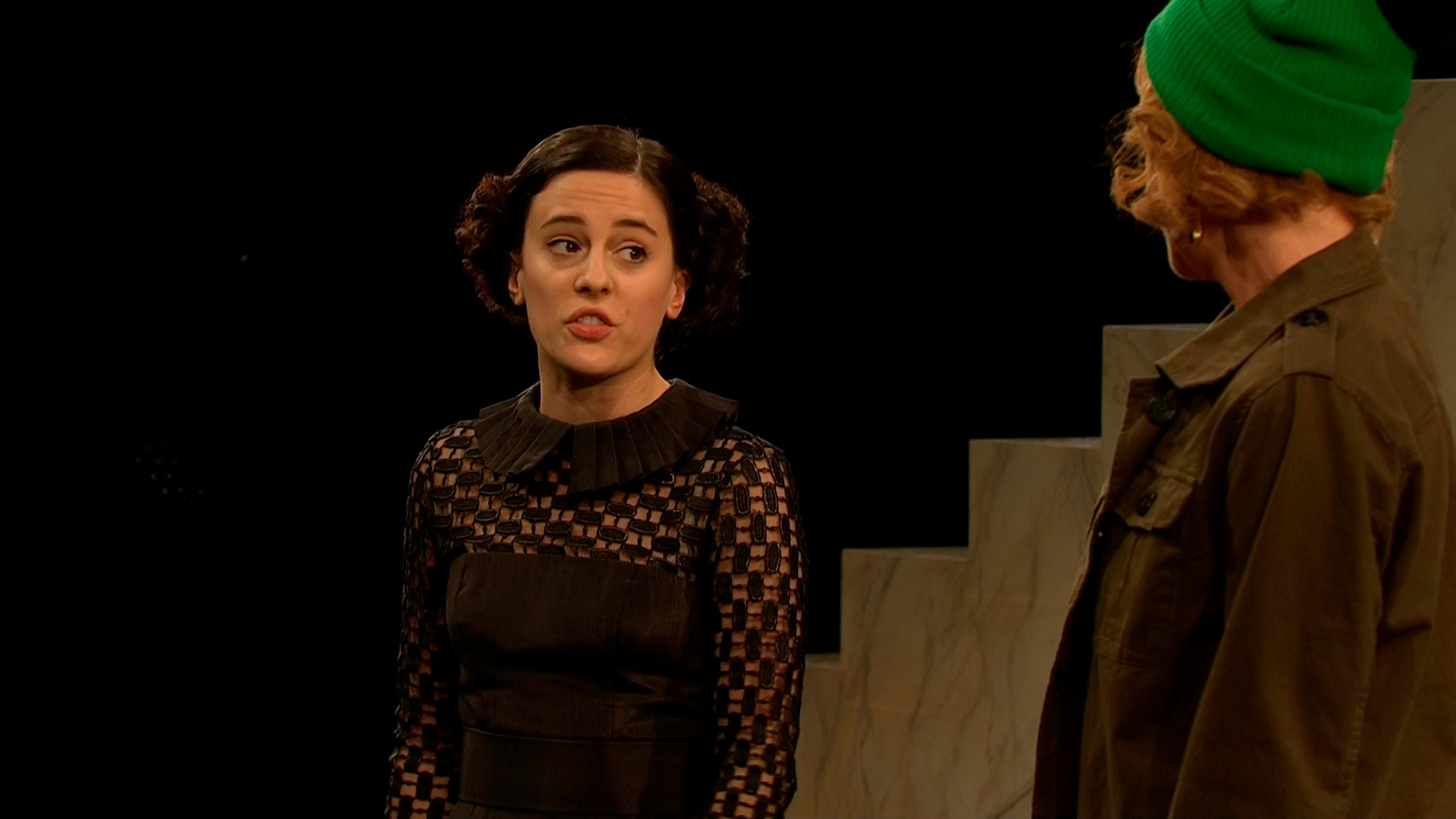 Здесь у Тэмсин Грэйг Мальволиа - эдакая сухопарая, очень строгая, но не надменная англичанка, которой неведомо чувство юмора. Часть спектакля до получения письма Тэмсин отыгрывает замечательно: там и текст классный, и Мальволиа в разговоре использует забавные жесты.