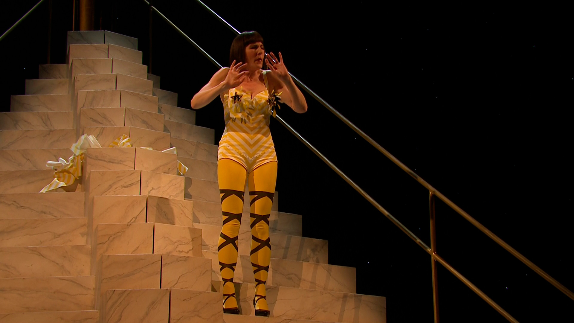 Сейчас этот спектакль в хорошем качестве, с русскими и английскими субтитрами можно найти, например, вот здесь: там два файла с двумя действиями, перед первым действием в течение восемнадцати минут идет рассказ о том, как это все ставилось. Субтитры там встроенные, в обоих файлах они слегка отстают, поэтому если у вас плеер поддерживает такую функцию, то субтитры желательно сдвинуть на 1,5-2 секунды вперед.