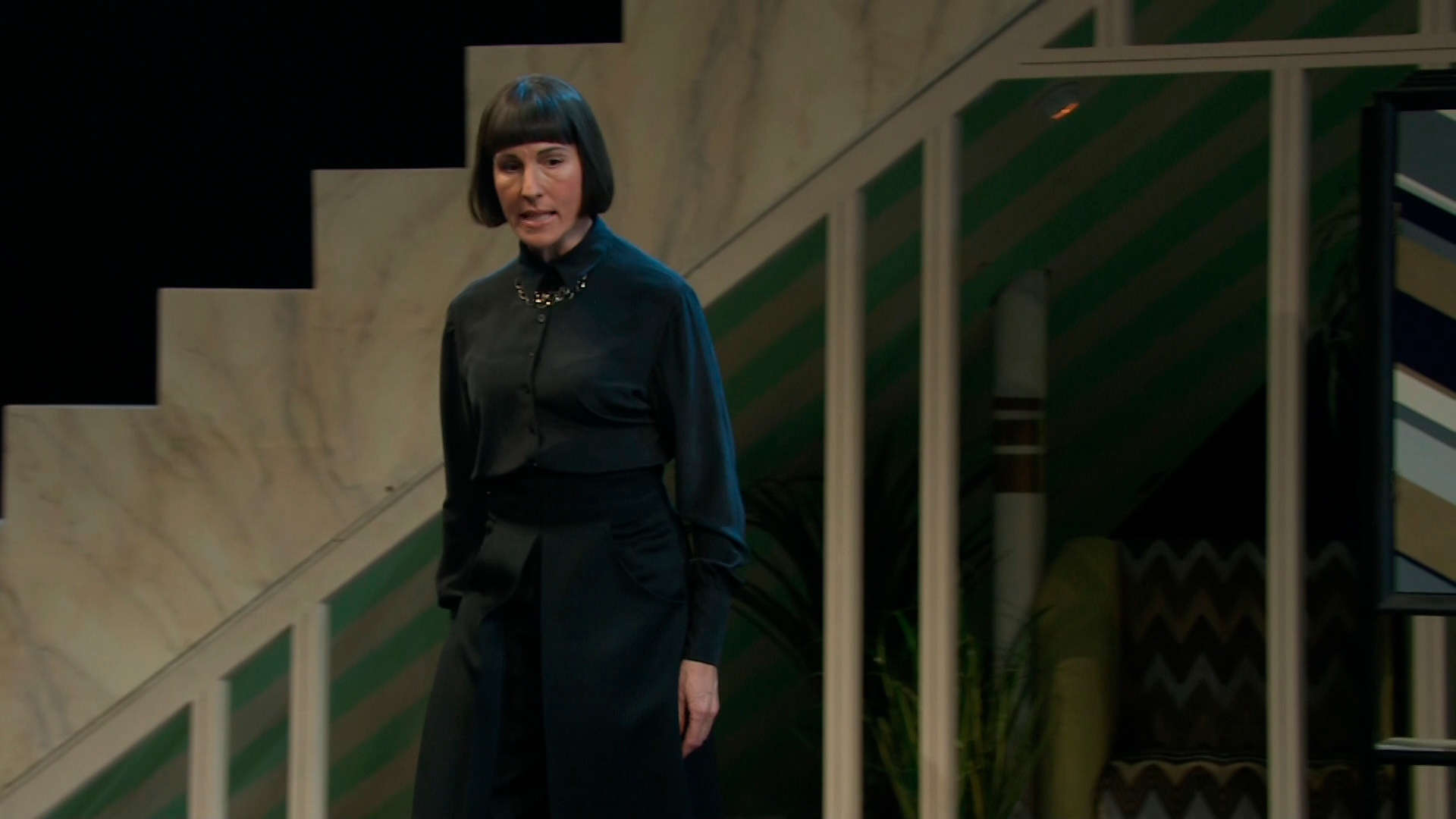 Но давайте уже поговорим об актерах. Главная звезда этого спектакля - Тэмсин Грэйг, которую мы знаем по чудесным сериалам "Книжный магазин Блэка" (Френ), "Зеленое крыло" (доктор Кэролайн Тодд) и "Эпизоды" (Беверли Линкольн), а британская театральная публика знает ее как известную театральную актрису, имеющую, между прочим, премию Лоуренса Оливье за роль в шекспировской же комедии "Много шума из ничего" (я пытался найти киноверсию этого спектакля, но пока, увы, не нашел).