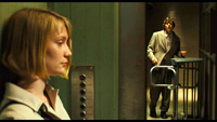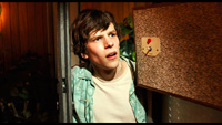 Миа Васиковска в роли Ханны - скорее не понравилась. Вот как-то не вышла у нее девушка, страдающая от одиночества. У Айзенберга Саймон - ну просто квинтэссенция добродетельного куска несчастья. (Хотя мы не будем забывать о том, что подглядывать за девушкой - это, конечно, вовсе не добродетель, да и романтика тут действительно не ночевала.) У Васиковски - персонаж значительно более "плоский". Она не слишком выразительна, периодически ведет себя странновато - в общем, не убедила. А уж на пике эмоций ее героини выяснилось, что это ее эмоции - вовсе не Пик Коммунизма, а так - небольшой холмик где-то за пригорочком. Жаль, тут явно просился более яркий персонаж. (Джесси Айзенберг, по слухам, закрутил с Васиковской роман на съемках, однако с киноведческой точки зрения плюсов картине это все равно не прибавляет.)