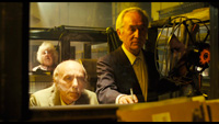 Вместо Достоевского тут скорее некая смесь из произведений Кафки, обильно сдобренная - нет, не явными заимствованиями, а скорее аллюзиями к работам вышеперечисленных режиссеров. Причем блистательная "Бразилия" Гиллиама первой приходит на ум, затем вспоминается "Жилец" Поланского, "Темный город" Пройаса, ну и, конечно, Линч с его манерой смешивать реальность с какими-то видениями. Также "Парад планет" Абдрашитова, который Айоади вряд ли смотрел, вспоминается в сценах в конторе, где Саймона и Ханну окружают одни старики.