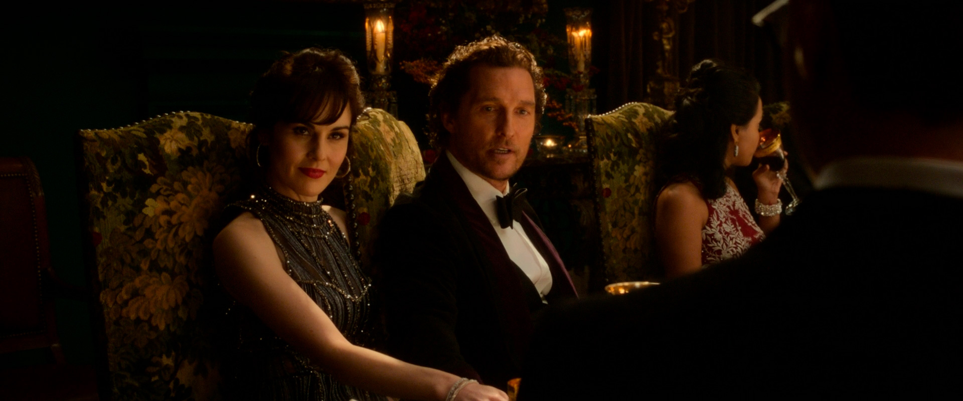 Мэттью МакКонахи совершенно роскошно сыграл Микки Пирсона. Эдакий лев в джунглях, он и по внешнему виду - царь зверей, и по повадкам. Эффектный, невероятно стильный, мощный, крутой - вот прям даже трудно сказать, кто мог настолько здорово сыграть Микки. Ну разве что, например, Брэдли Купер мог выдержать подобный уровень, да и то, на мой взгляд, МакКонахи все-таки круче. И с ним в паре очень здорово оттягивалась звезда "Аббатства Даунтон" Мишель Докери, которая здесь играла откровенную оторву, и она мне в этой ипостаси понравилась намного больше, чем в роли леди Мэри.