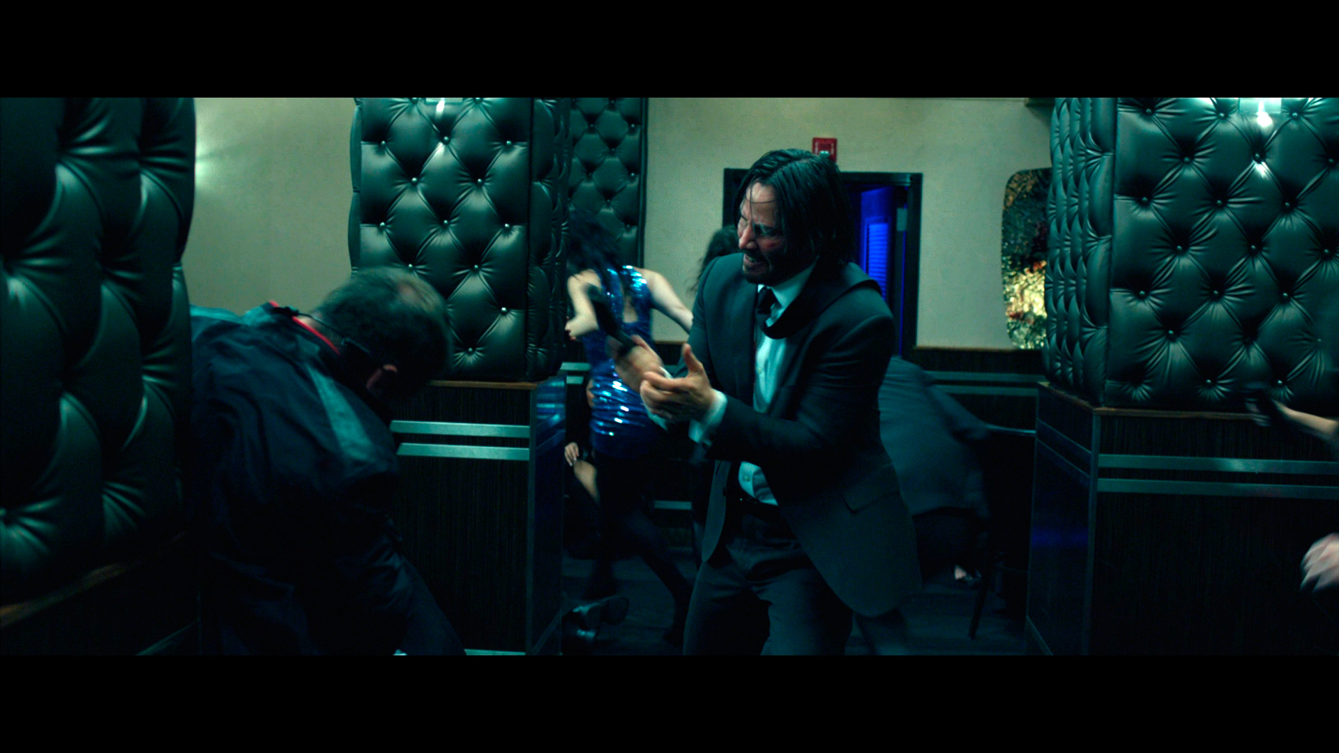 А здесь... Здесь началось все с тоски зеленой: Киану Ривз красиво тоскует по жене, красиво ездит на крутой тачке, красиво спит на огромной кровати и красиво страдает. Ну, допустим. Хотя меня вот эти красивые страдания Киану Ривза не трогали ни разу. Вот Мартин Риггс, тоскующий по жене, сидящий в маленьком фургончике на пляже, трогал очень сильно. Тут - не цепляло.