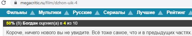 В итоге я должен сказать страшное - мне понравился очередной "Джон Уик", причем даже очень понравился. Не как боевик, конечно, а как офигенно поставленная и очень эффектно снятая компьютерная игра, в которую меня не заставляют играть, а предлагают просто на нее посмотреть. Что я и сделал с большим удовольствием.