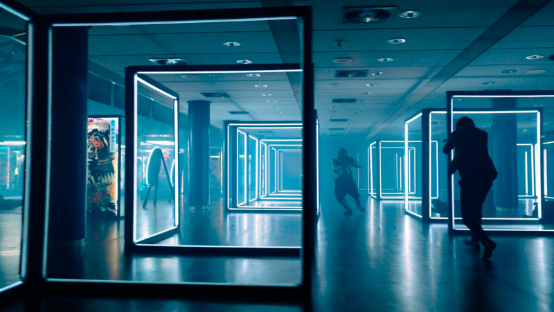 Эпизод в стиле второго "Джона Уика" из серии "много-много людей танцуют в огромном ночном клубе, где все время льется какая-то вода, а там Джон Уик отстреливает 250 врагов" типа как повторили (его снимали в том самом берлинском техно-клубе), но со значительно большим размахом, при этом остальные локации отличались ещё большим размахом и разнообразием по сравнению даже с третьим фильмом.