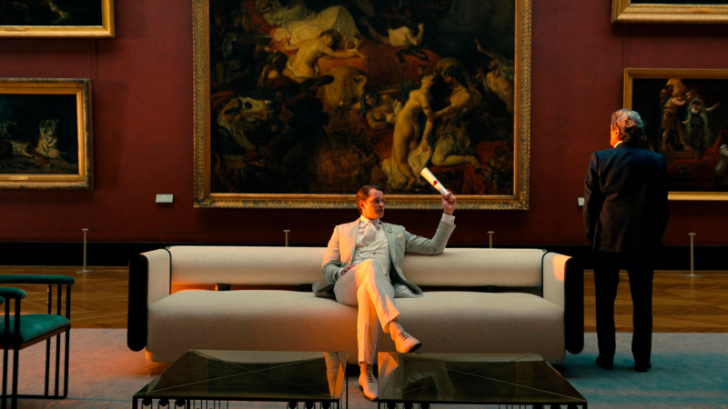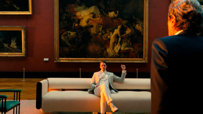 Маркиз Венсан де Граммон в этом фильме тоже не стесняется. Нью-йоркский офис у него располагается где-то в Empire State Building, завтракает он в Версальском дворце, назидательные беседы ведет перед полотнами Лувра (я предположил, что нам просто показывают его рабочий кабинет), однако весь этот антураж реально блекнет перед костюмами маркиза, которые даже на меня произвели такое заметное впечатление (безо всякой ирониии, потому что это было просто классно), что я уже заказал себе две новых парадных майки веселой расцветки, потому что устыдился бедности своего гардероба.