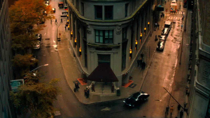 Также поразительно здорово было снято сражение Джона Уика с очередными ребятами, у которых оружие плевалось "пламенем дракона", снятое специальной камерой с большой высоты, и это сражение было поставлено в огромных декорациях без крыши - это было полностью в парадигме "вы наблюдаете за компьютерной игрой", и это было очень круто сделано, а кроме того, я не помню, чтобы я вообще что-то подобное видел в фильмах.