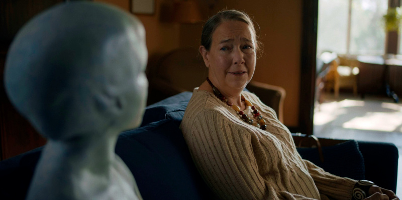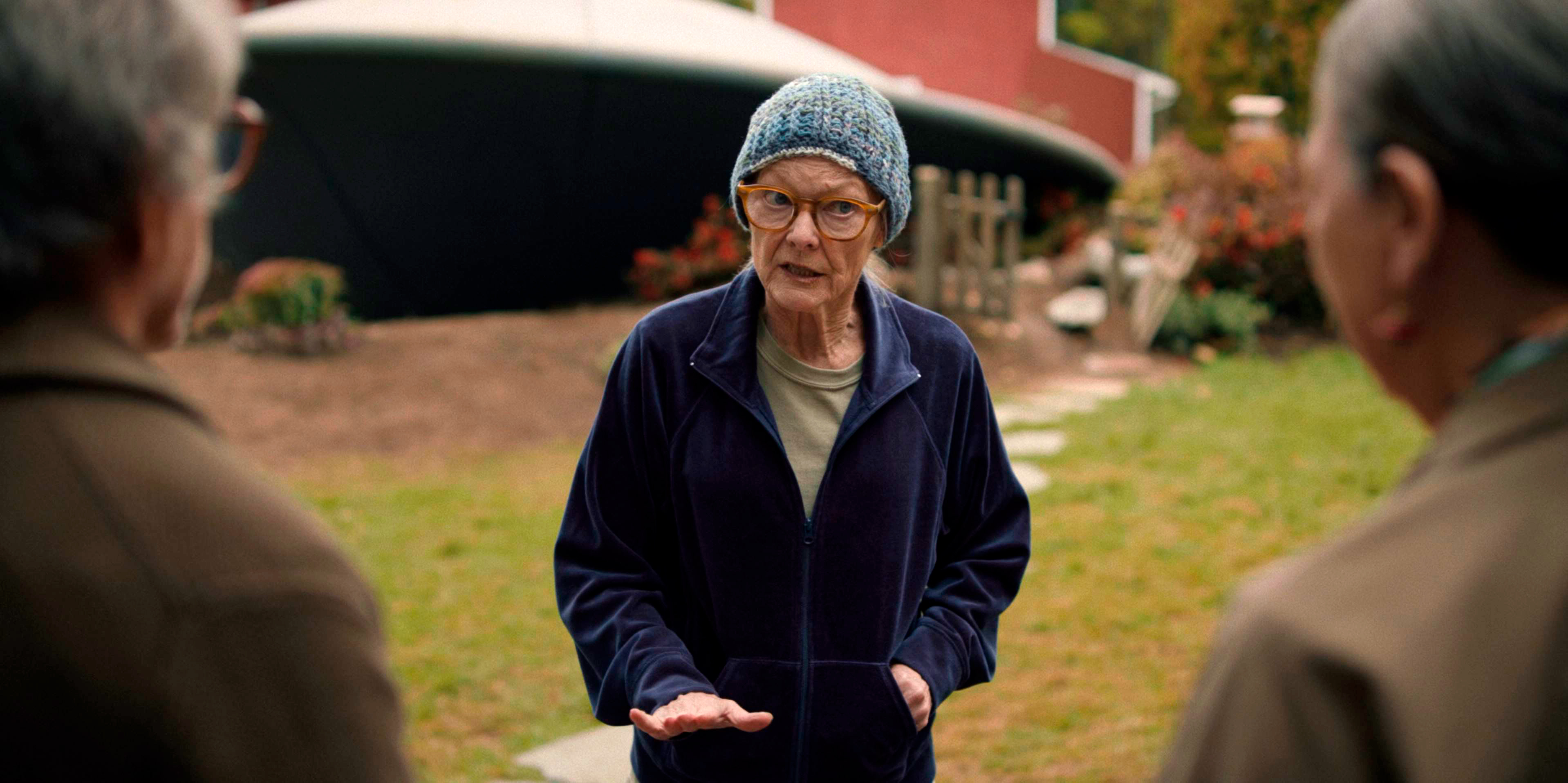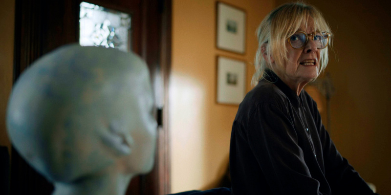Харриет Сэнсом Харрис очень хорошо сыграла Сэнди - тоже бесконечно одинокую пожилую женщину, которая отчаянно придумывает какие-то акции из серии "молодые общаются со стариками", чтобы получить свою частичку общения. Ничего хорошего из этого ожидаемо не получится, но, благодаря молчаливому инопланетянину Джулсу, у нее теперь появится и какая-то цель в этой жизни, и клуб по интересам - вместе с Милтоном и Джойс.