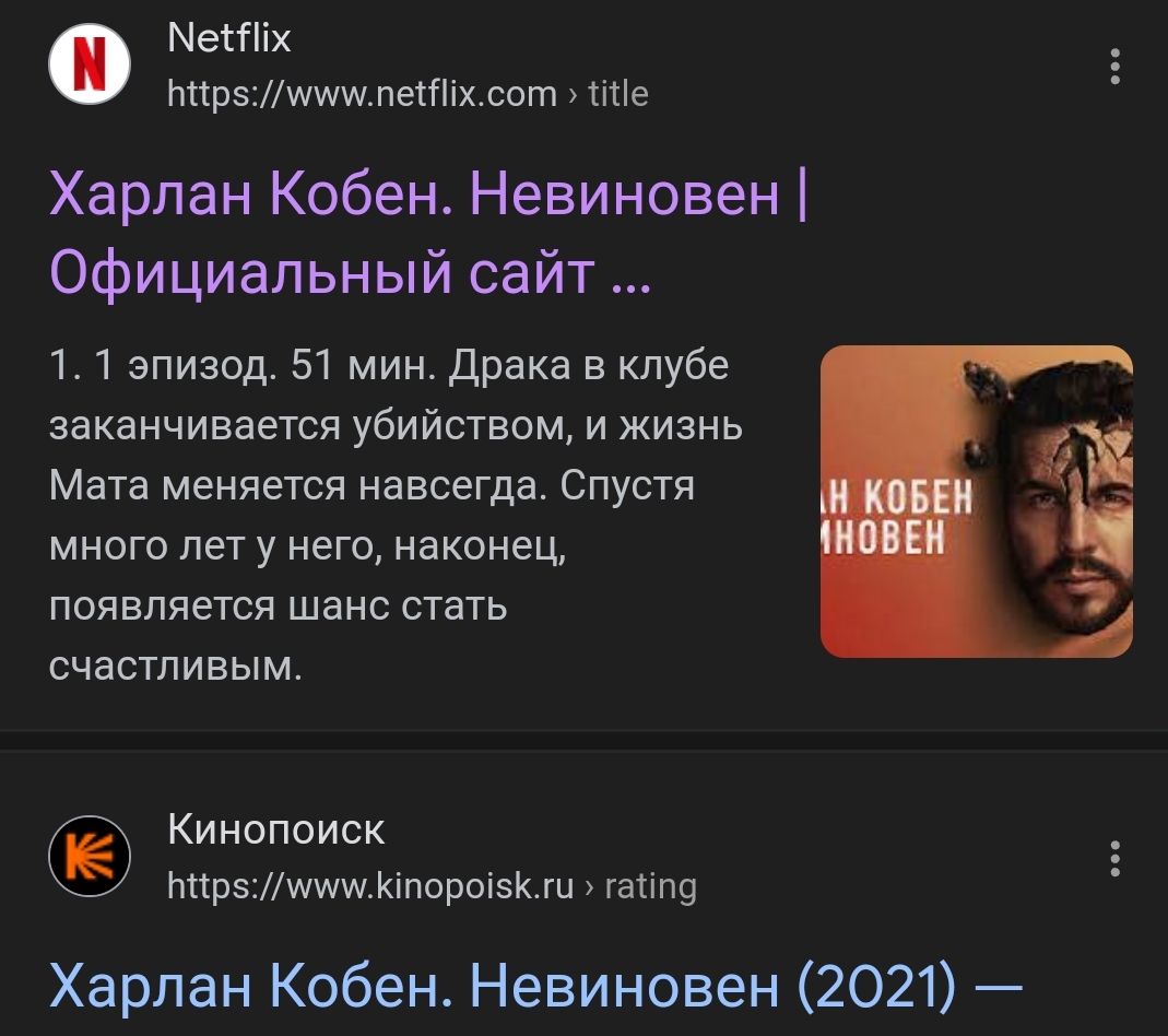 "который на "Кинопоиске" зачем-то обозвали "Харлан Кобен. Невиновный","