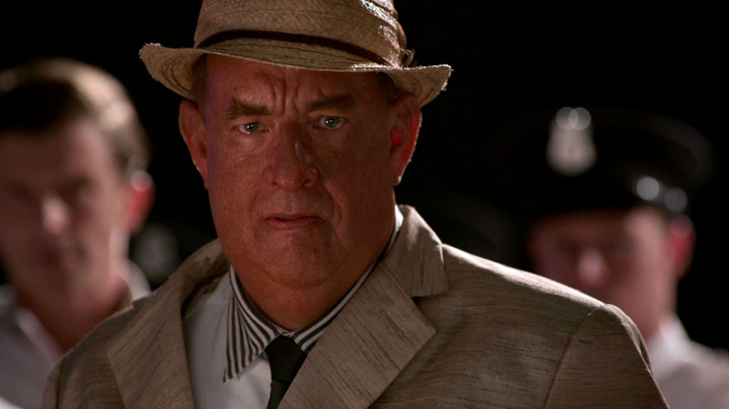 Том Хэнкс, как известно, роли всяких злодеев не играет: он берется только за положительных персонажей, и они у него выходят очень хорошо. Однако здесь по сюжету полковник - безусловно, персонаж отрицательный, что к тому же всячески подчеркивается гримом и манерой разговора: этот Паркер - липкий, подлый, жадный и лицемерный.