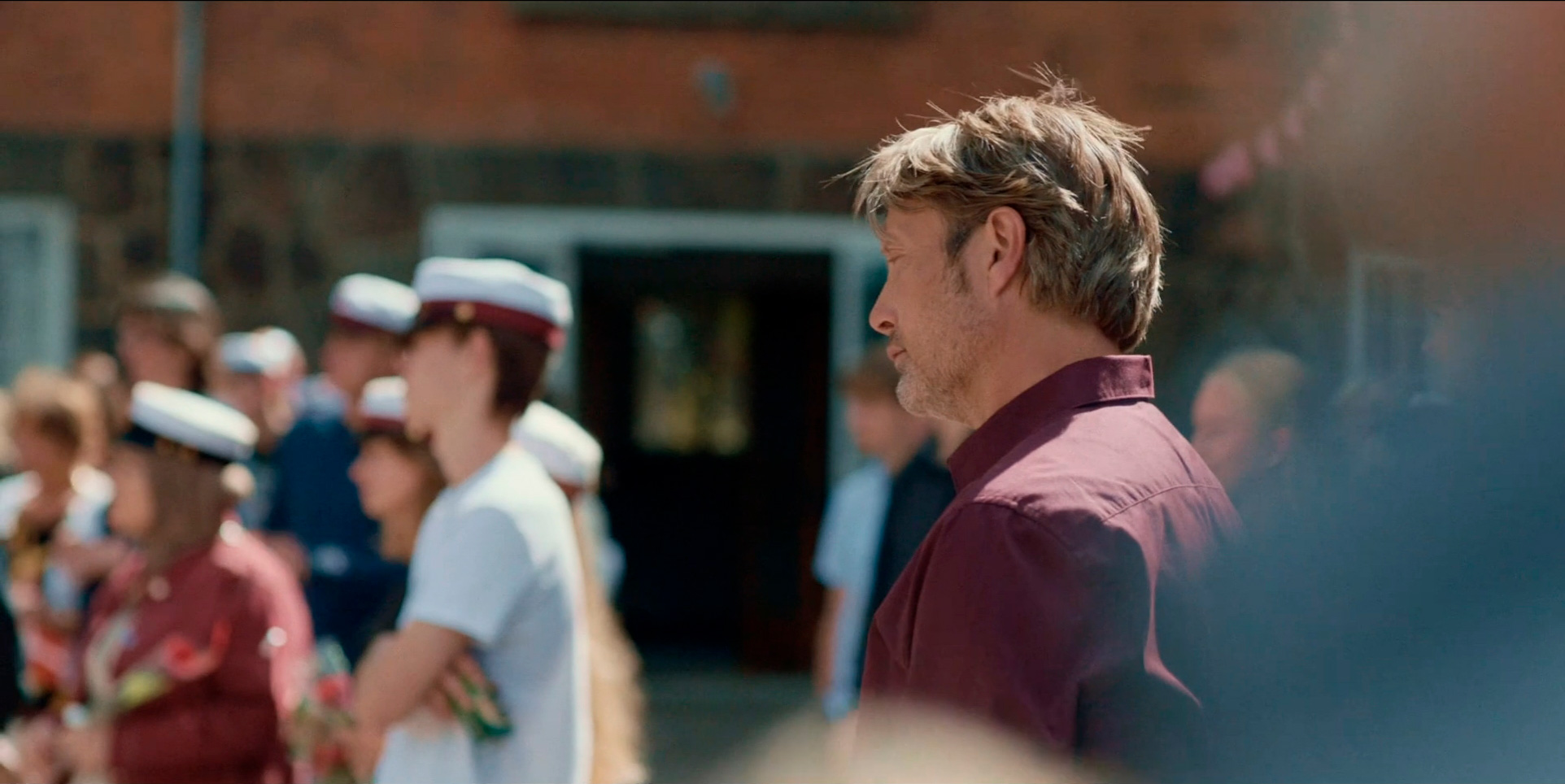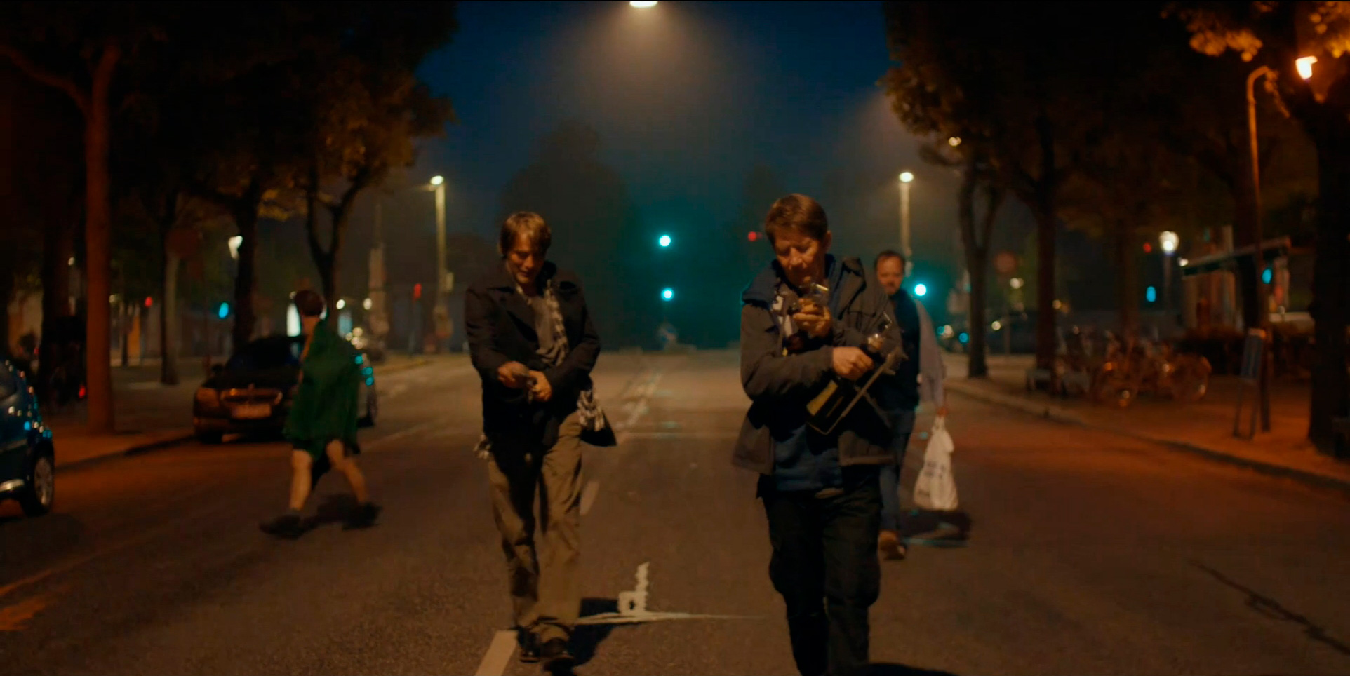Ну и финальный танец Мартина - он тоже очень интересно сделан: Мартин в процессе танца выпивает и Мадс Миккельсен показывает, как у Мартина менялась манера движения. Винтерберг говорил, что они поначалу не были уверены в том, что эта сцена будет уместна и что они ее смогут снять должным образом, но Миккельсен с этим эпизодом справился отлично. (Кстати, актер в юности занимался танцами и даже учился в балетной академии Гётеборга.)