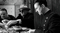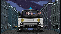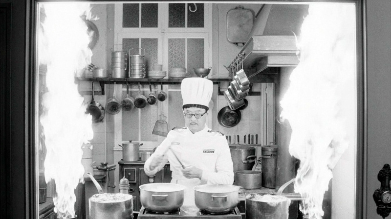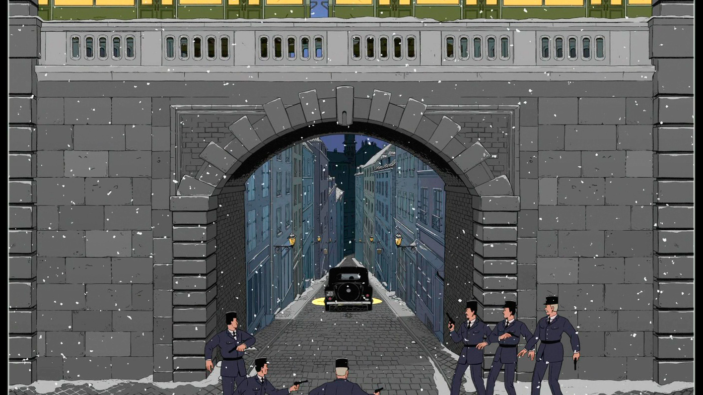 Третья новелла "Приватная столовая комиссара полиции" - само ток-шоу в ярких красках, однако опять черно-белая палитра в той истории, о которой рассказывает Ройбак Райт, а сцена полицейской погони и вовсе сделана в анимационном стиле комиксов о приключениях Тинтина бельгийского художника-самоучки Эрже (Жоржа Проспера Реми). И эта анимационная вставка также сделана с большим искусством.