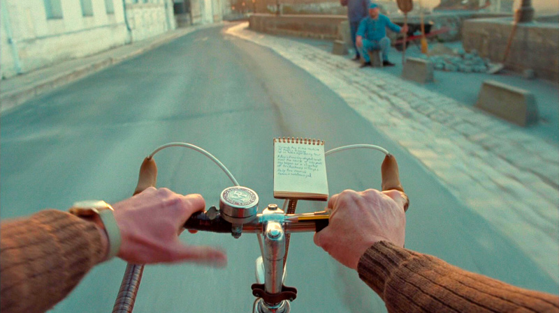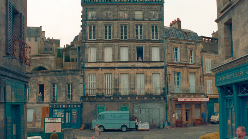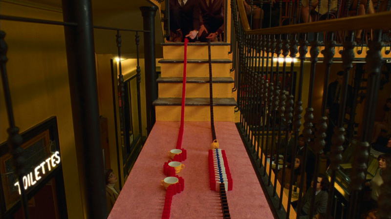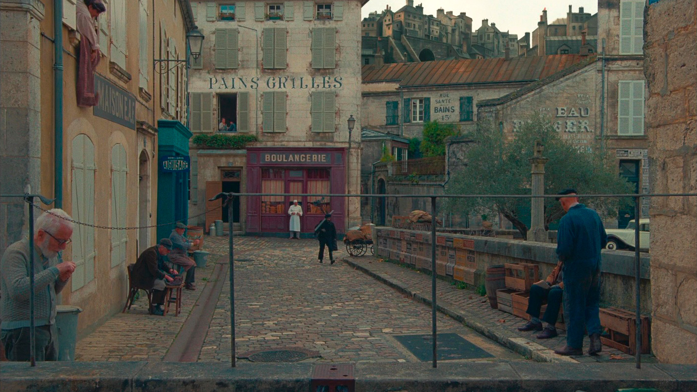 Пролог - велопрогулка Оуэна Уилсона (они с Уэсом Андерсоном знакомы со студенческих времен, Уилсон как сценарист работал над четырьмя фильмами режиссера и снялся у него в восьми картинах) по вымышленному городку Аннуи-сюр-Блазе (кстати, название Ennui-sur-Blasé переводится примерно как "Скука-на-Апатии") - она чисто созерцательная, и это совершеннейший визуальный восторг, в который режиссер умеет приводить зрителей: как будто театральные декорации с огромным количеством мельчайших интереснейших деталей, традиционные для Андерсона пастельные тона и перфекционистская выверенность каждого кадра. По тщательности выстраивания каждого кадра Уэс Андерсон напоминает другого режиссера - шведа Роя Андерссона, снявшего, например, картину "Ты, живущий".