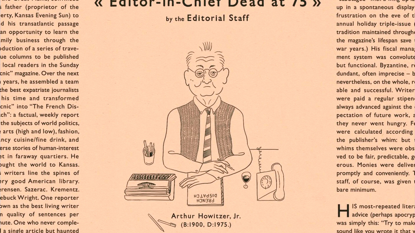 Артур Ховитцер-младший умер, сотрудники оплакивают его и приступают к работе над последним выпуском издания, которое должно почтить память издателя.
