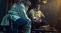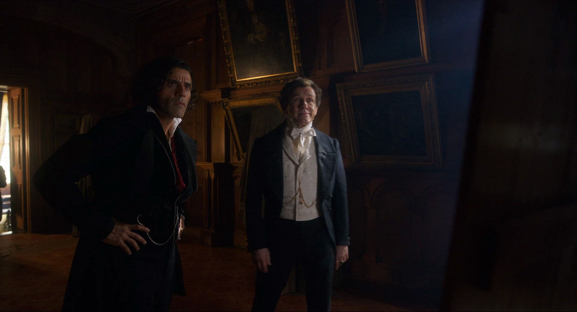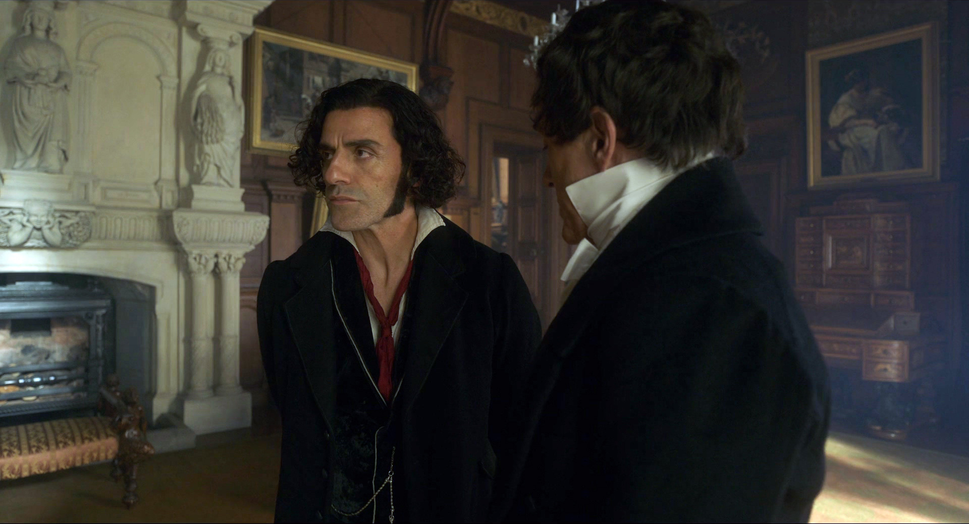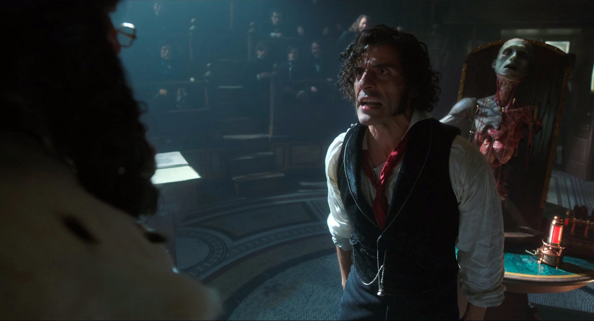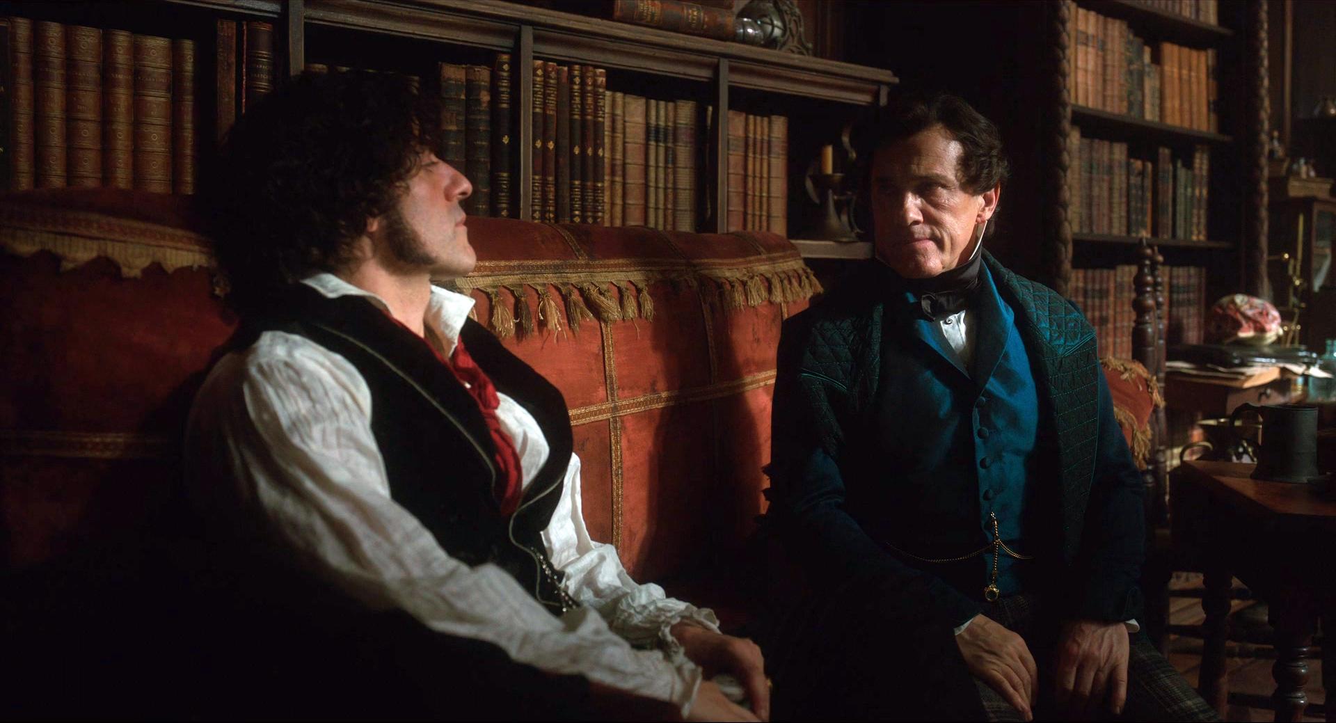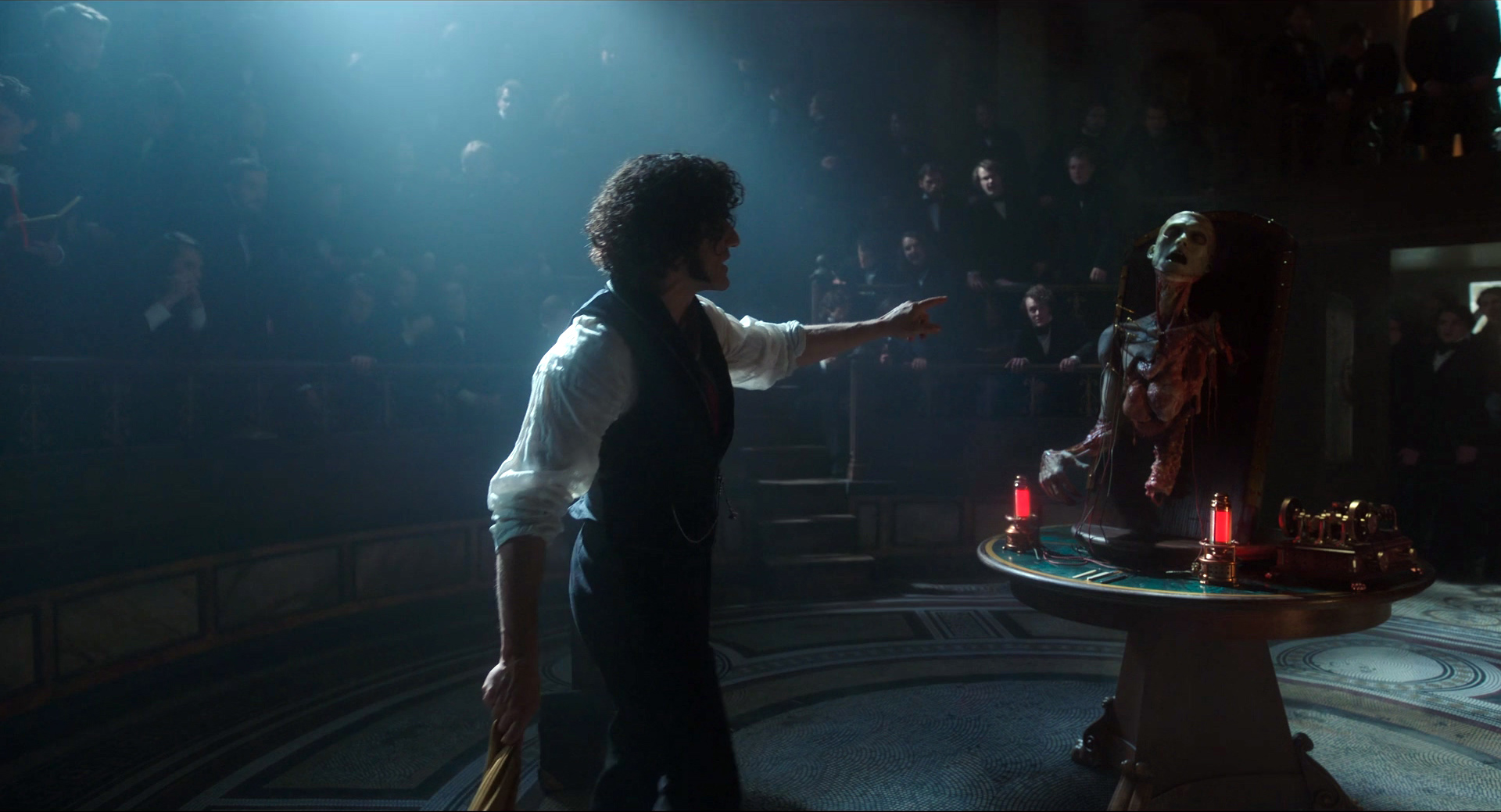 У Кристофа Вальца тут достаточно небольшая роль этого оружейного промышленника, который спонсирует эксперименты Франкенштейна в своих собственных интересах. В книге, насколько я помню, этого персонажа нет вообще, но здесь и действие из конца XVIII - начала XIX века перенесено в середину XIX века, Крымскую войну: видимо, режиссеру было важно показать, что Существо создано именно из тел солдат, павших на поле битвы - эдакая коллективная военная травма. Из этого, видимо, и возник производитель оружия, который страшно разбогател на военных поставках.