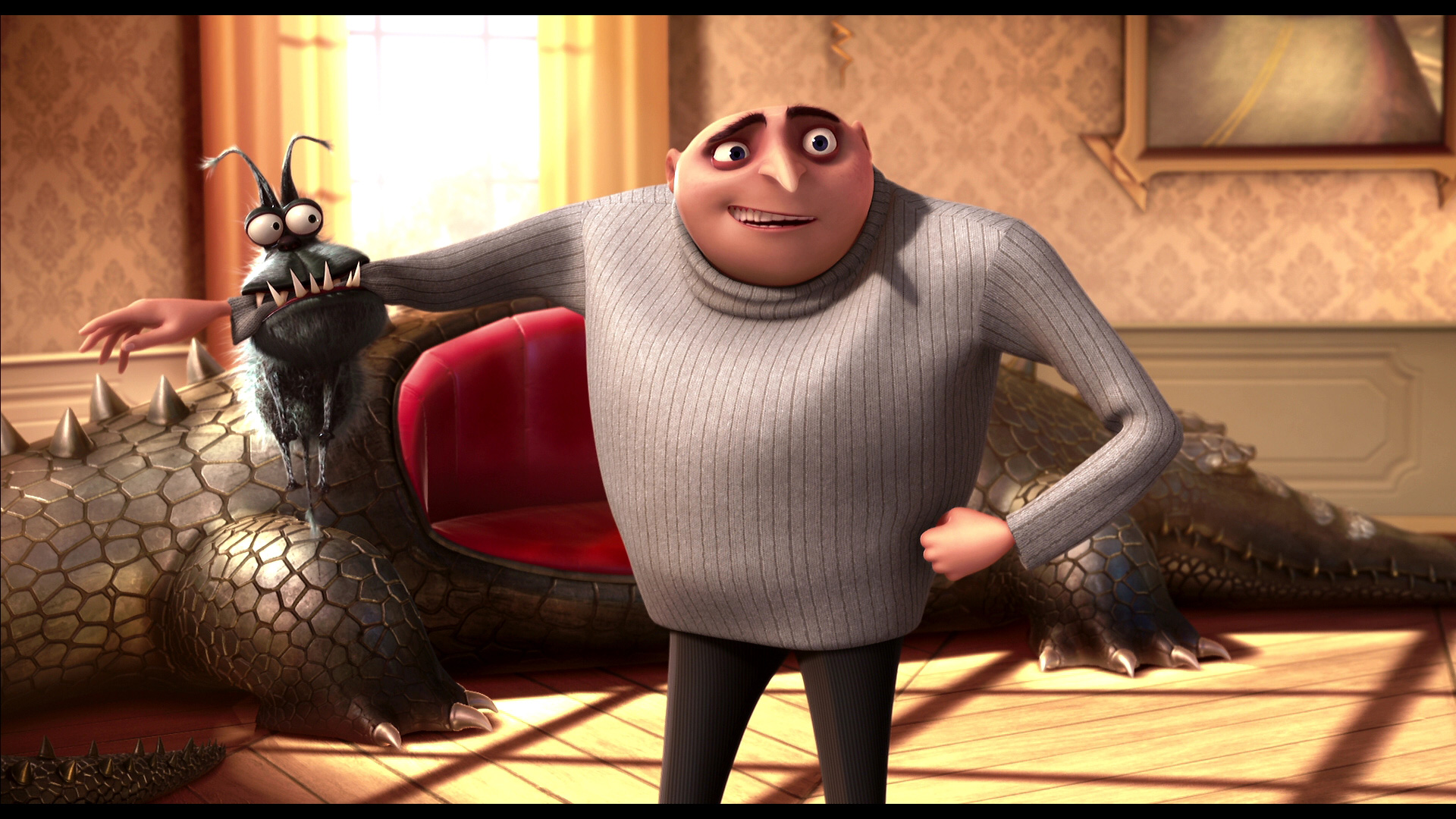 голос - до того Грю забавно смотрелся.