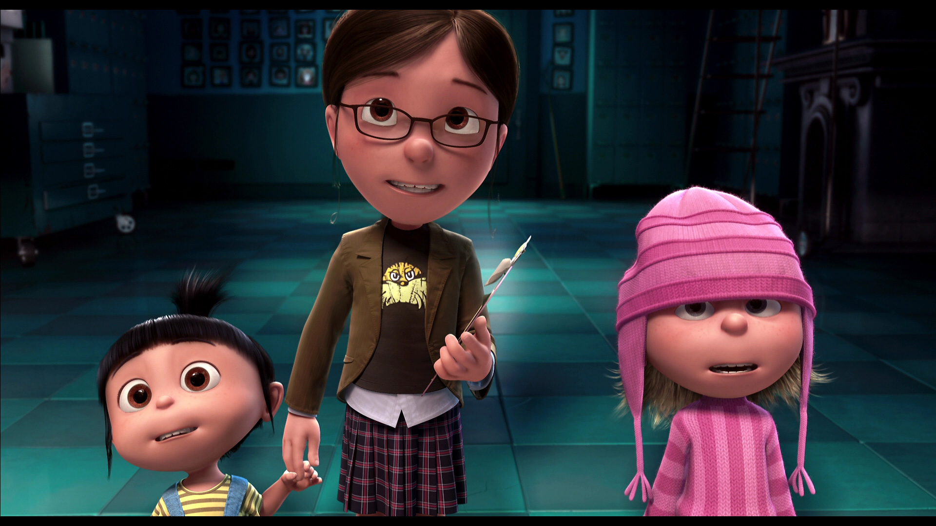 Еще здорово то, что характер и мотивация прописаны абсолютно у всех персонажей, даже самых эпизодических, вроде соседа Грю. И много забавных деталей - например, дружная реакция одиноких мам на Грю в бальном кружке.