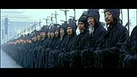 Ну и, в-четвертых, спецэффекты. Сцена атаки лучников на школу каллиграфии восхищает не только с точки зрения эффектов как таковых, но и тем, как это все придумано. Соорудить на компьютере какой-нибудь космический корабль или инопланетную тварь - в общем, не сложно. Но попробуйте изобрести что-нибудь принципиально новое в изображении атаки лучников - вряд ли что-нибудь получится. А в "Герое" - получилось...