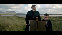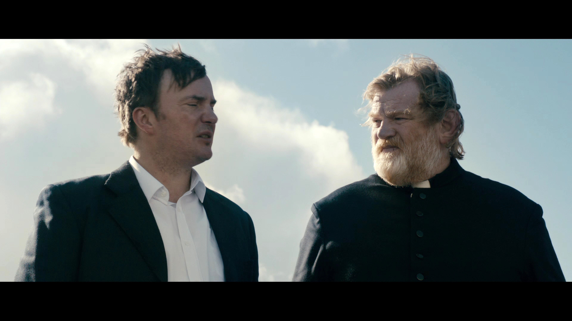 В "Голгофе" (на этот раз прокатчики дали точный перевод официального названия) то же побережье маленького ирландского городка, те же морские виды, те же колоритные, хотя и несколько своеобразные местные жители, тот же Брендан Глисон, что и в "Однажды в Ирландии"