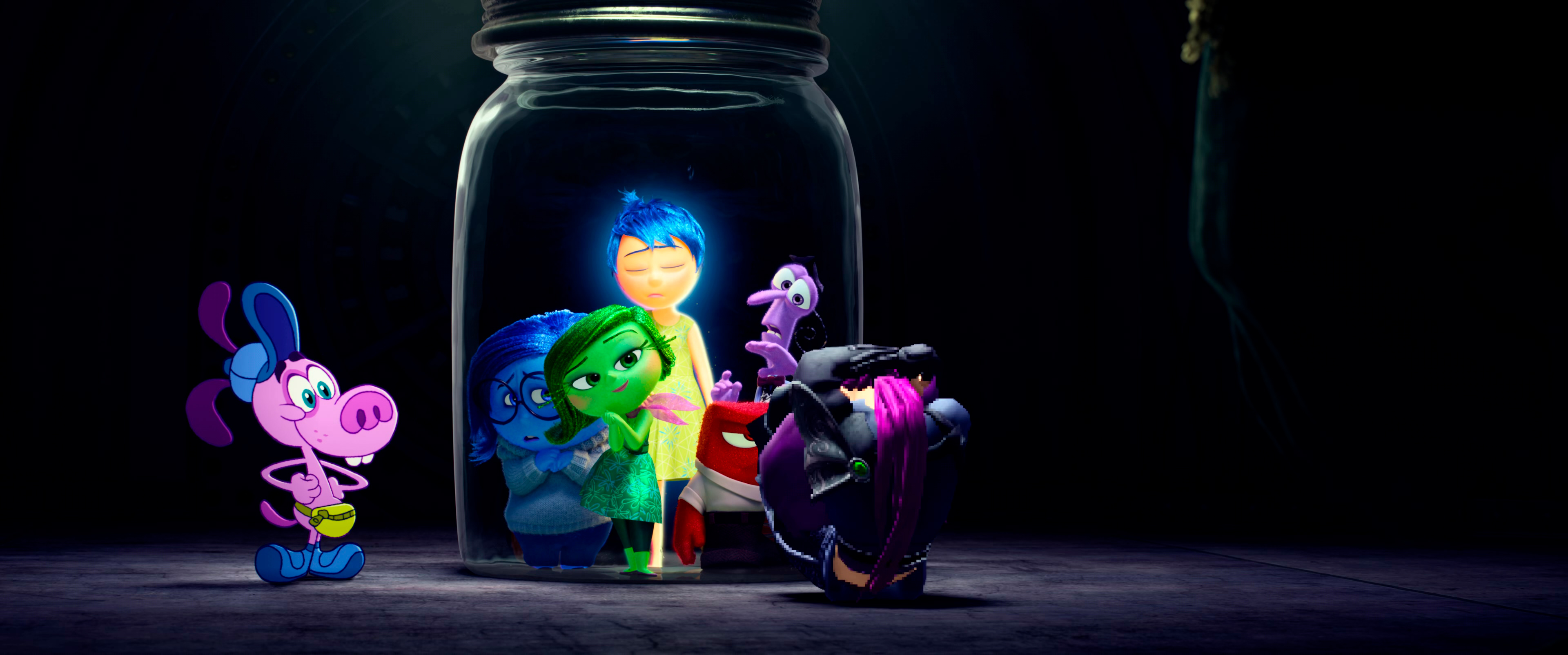 Радость с этим не собирается соглашаться, но в результате из-за Радости Райли подставила всю команду, так что Тревожность со своими подельниками всю эту старую шатию-братию эмоций запирает в стеклянной банке и отправляет в закоулки памяти. Теперь именно Тревожность будет определять все последующие поступки девочки.
