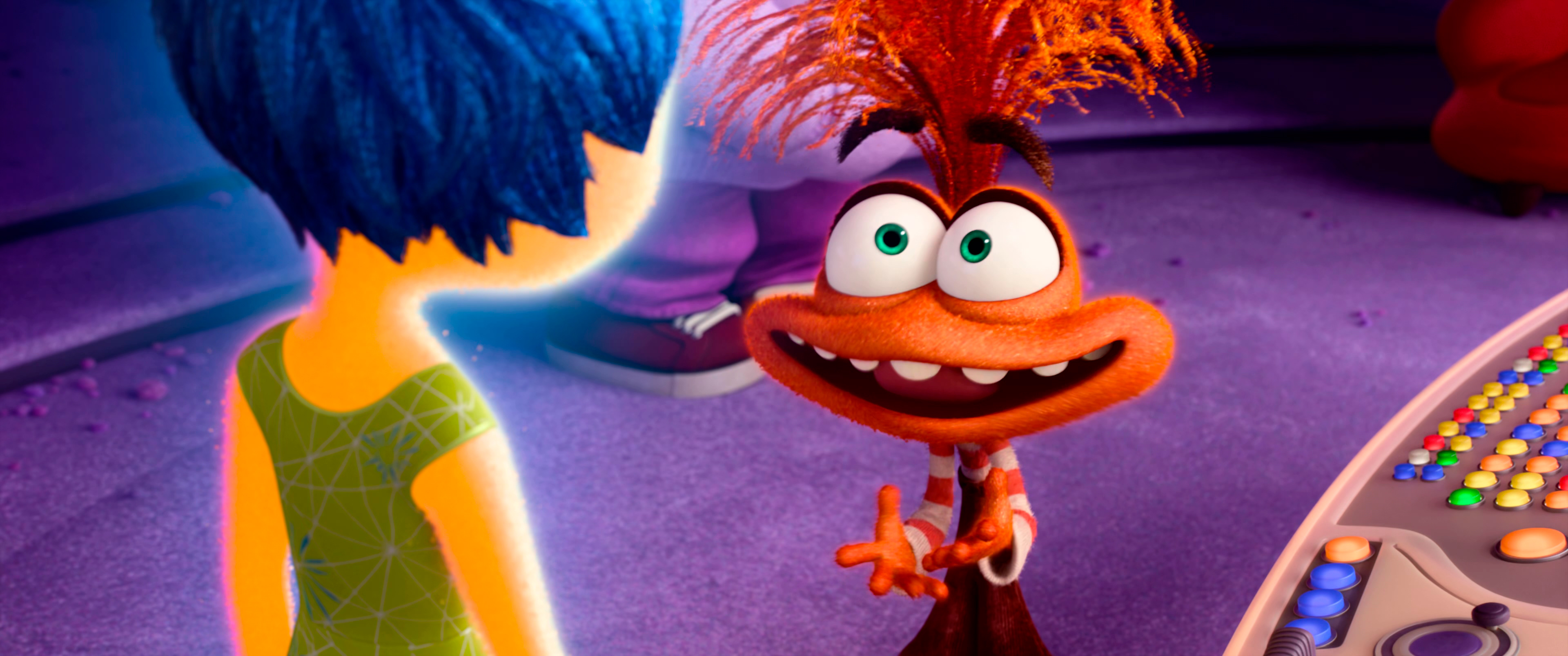 Однако в ночь перед отъездом в лагерь на пульте эмоций центра управления сработала тревожная кнопка "Пубертат", и эмоции поняли, что теперь все будет не так как раньше. А и действительно - через непродолжительное время в центре управления появилась группа новых эмоций - Тревожность (Майа Хоук), Зависть (Айо Эдебири), Стыд (Пол Уолтер Хаузер) и Скука (Адель Экзаркопулос).