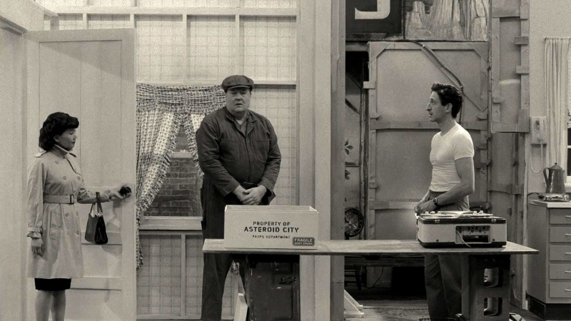 Ведущий (Брайан Крэнстон) в специальной телепередаче рассказывает нам о театральной постановке "Астероид-сити", которую режиссер-новатор Шуберт Грин (Эдриен Броуди) ставит по пьесе легендарного драматурга Конрада Эрла (Эдвард Нортон).