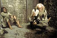- В замке творятся жуткие нравы, - говорит Джей. - Начальник тюрьмы каждый год избивает заключенных, и Дантес только и мечтает, как бы удрать. Но внезапно к нему в камеру пробирается аббат Фариа, и они подружились.