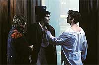 Однако картину можно спокойно посмотреть как комедию. Во всяком случае зрительный зал вместе со мной просто умирал от хохота, глядя на то, что американцы сотворили с этой книгой. Комедия абсурда, честное слово. Но сразу говорю, что в кино на фильм не надо ходить. Вполне достаточно глянуть на кассете, потому что никаких приличных съемок там нет, хорошего звука - даже рядом, да и фильм не широкоэкранный, так что я, глядя на тусклый квадратик в середине экрана, даже и не понял, за что отдал 250 рублей за билет в "Кодак-Киномир".