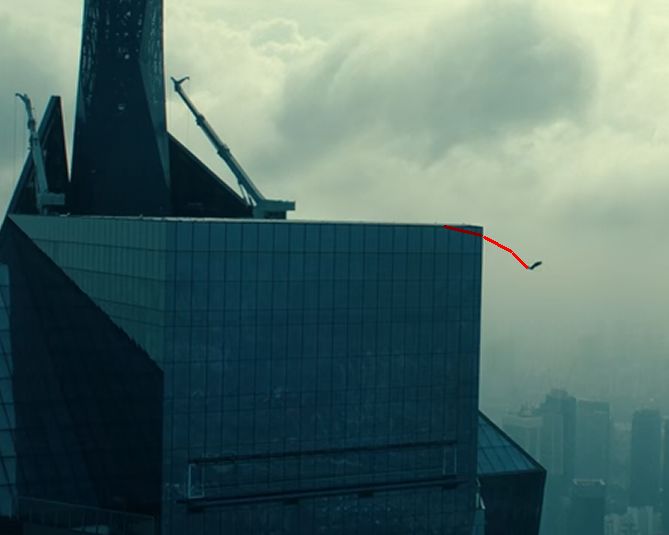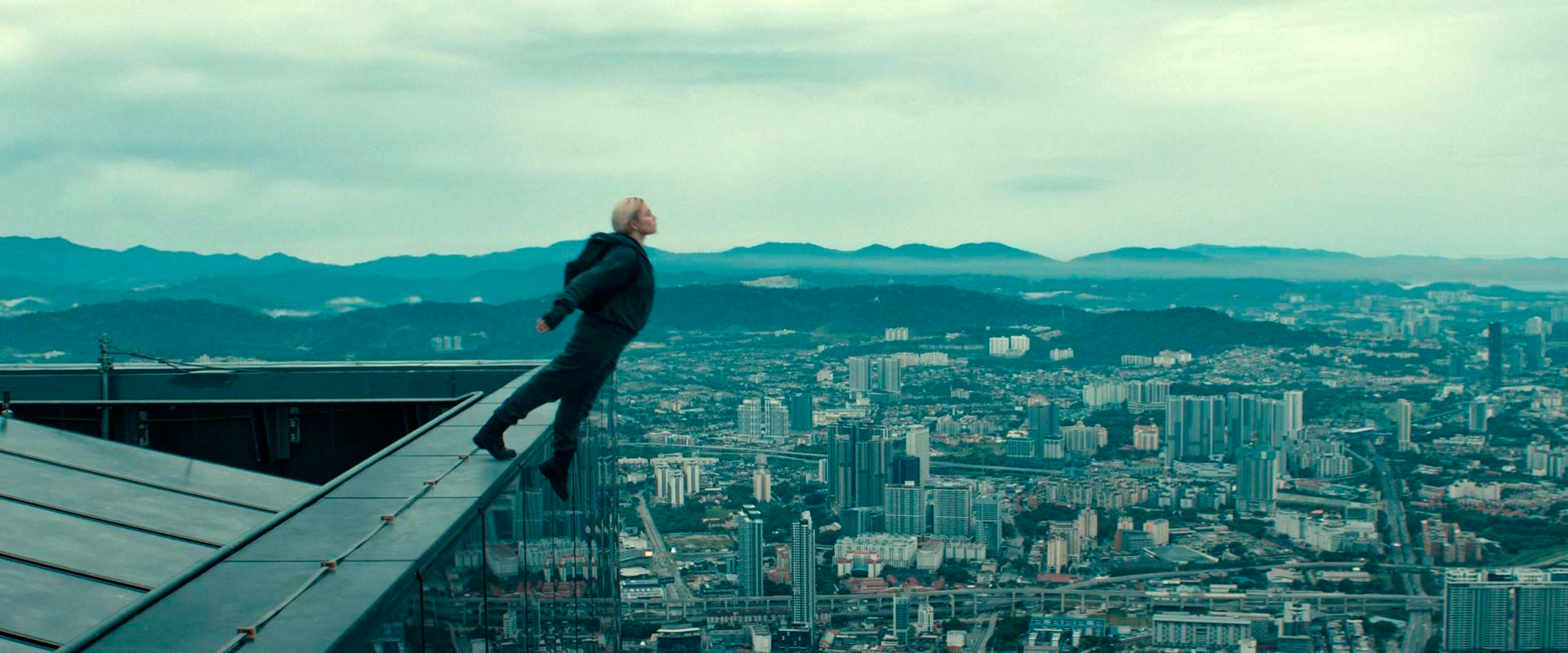 картина начинается с того, что Елена прыгает с парашютом со второго по величине здания в мире - Merdeka 118, оно же Menara Warisan Merdeka, расположенного в Куала-Лумпуре, столице Малайзии. Это не нарисовано на компьютере, и прыгала при этом сама Флоренс