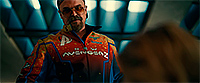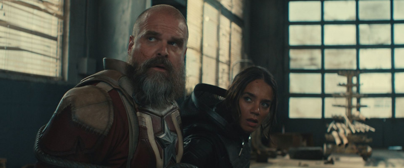 Дэвид Харбор в роли Красного стража - очень забавен. Дэвид и в "Черной вдове" внес определенный элемент юмора и веселого балагана, и здесь он отвечает за юмористическую составляющую, и в этой роли он смотрится отлично. При этом и у него, и у Флоренс - неплохой русский акцент в произношении.