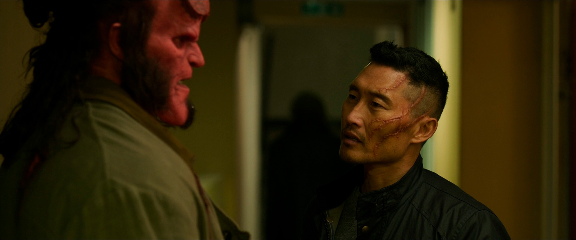 Что получилось у Маршалла? Он сделал то, что от него в принципе и ждали. Убрал все эти романтичные слюни-сопли, Хеллбоя сделал не огромным симпатяшкой с тонкой душой, как у дель Торо и Перлмана, а страшно брутальным монстром с очень мрачным юмором, озабоченным своей самоидентификацией в мире людей, профессор Брум предстал тут жестоким и циничным убийцей, для которого интересы Бюро превыше всего, нежный цветок-пиротик из старого Хеллбоя превратился в оторву-медиума Элис (Саша Лэйн), которая умеет блевать красивыми трехмерными голограммами призраков, а вместо чувствительного и поэтичного Ихтиандра здесь рядом с Хеллбоем действует изуродованный крутой спецназовец майор Бен Диамио (Дэниэл Дэ Ким), который по жесткости и боевитости Хеллбою мало чем уступает.