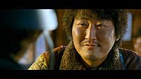 А вот "хороший" До Вон Пак в исполнении У Сон Чона получился не особо заметным. Причем У Сон сыграл его хорошо, однако тут уже, как я понял, сыграли свою роль финансовые ограничения. Создатели фильма сначала закладывали в бюджет $10 миллионов, но в процессе съемок значительно превысили смету, поэтому картину, во-первых, пришлось продавать прокатчикам еще до окончания съемок, а во-вторых, некоторые сюжетные линии пришлось обрезать, что особенно заметно по второй трети картины. В результате До Вон Пак как-то не раскрылся, хотя персонаж, по идее, очень интересный. Впрочем, в сцене на Рынке призраков персонаж У Сона оттянулся вовсю - это было отлично снято. Как и весь эпизод.