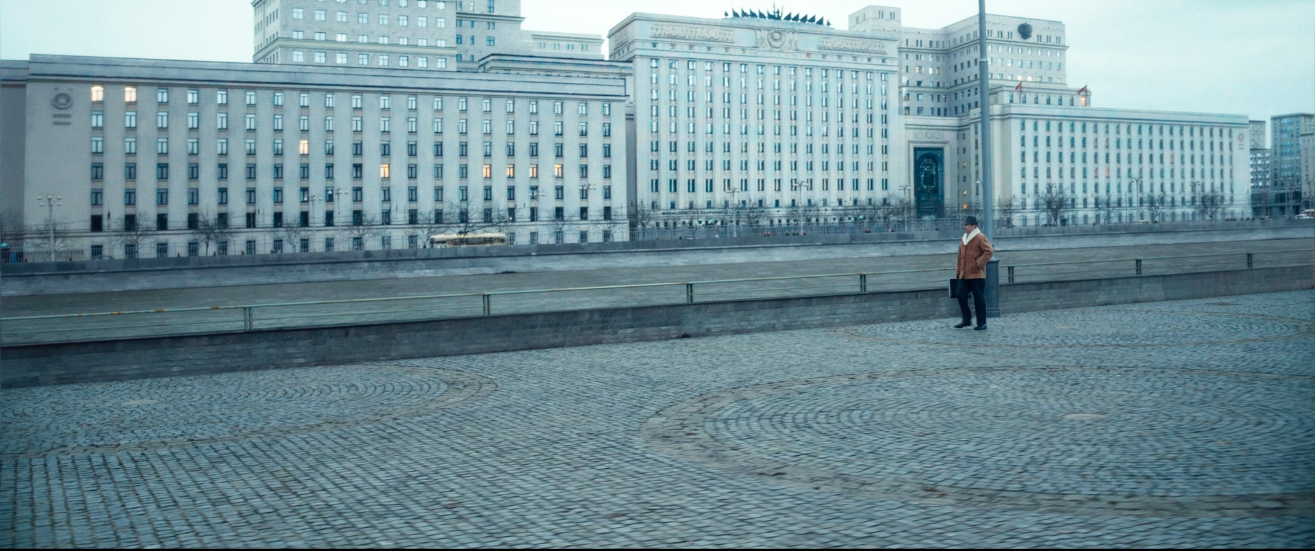 Москва же выглядит на экране как филиал Мордора: небо затянуто тучами, у всех прохожих суровые лица, а на этаже элитной московской гостиницы уровня «Националь» сидит Баба-Яга с вязанием и мысленно фотографирует каждый шаг зазевавшегося иностранца.