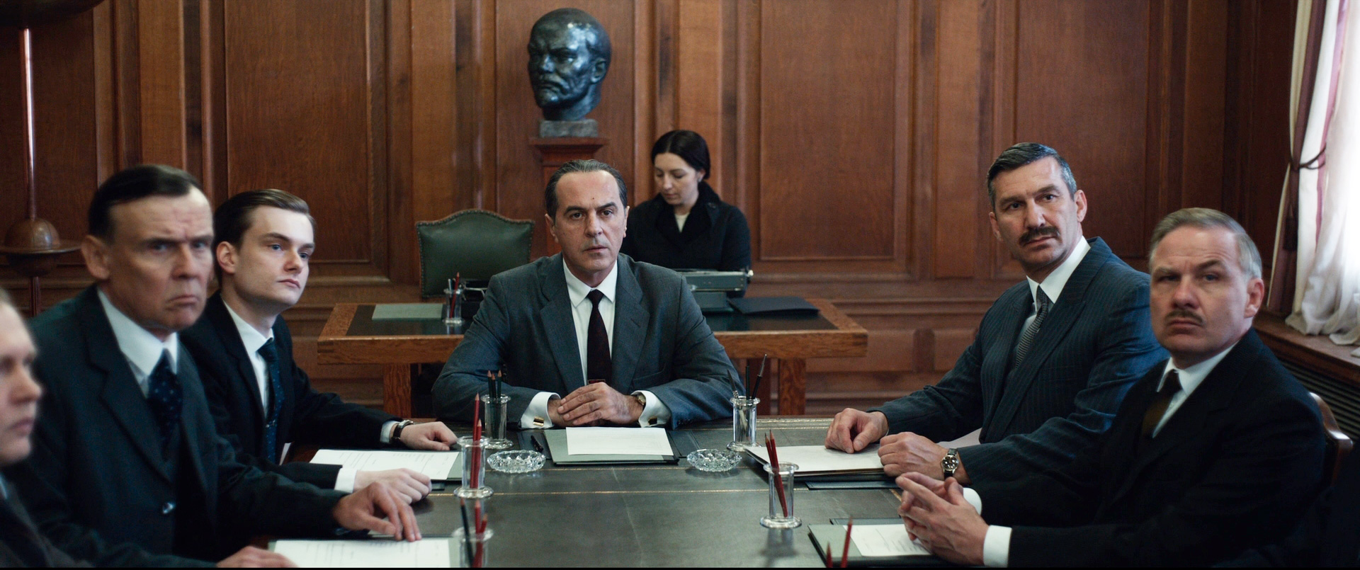 Также отмечу, что в данном случае и СССР показывался более или менее аутентично (московский крутой отель под названием "Виталий", в котором живет Уинн, оставим на совести создателей картины), да и русских играют в основном русские (русскоязычные), а не хорваты или чехи. Здесь кроме Мераба Нинидзе заняты: Мария Миронова (она играет жену Пеньковского), Владимир Чуприков, Эмма Пензина, Кирилл Пирогов, Петр Климеш, Рустам Хаджиев, Юрий Климов и еще несколько актеров.