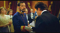 Следующие комплименты в части актерской игры - британцу Руфусу Сьюэллу, изобразившему кронпринца Леопольда. До этого фильма данного актера я видел только в двух фильмах: в пародийной "Истории рыцаря" он сыграл достаточно проходную роль графа Анжуйского, а вот в приключенческой картине "Легенда Зорро" Сьюэлл уже явно блеснул в роли подлого масона Арманда.