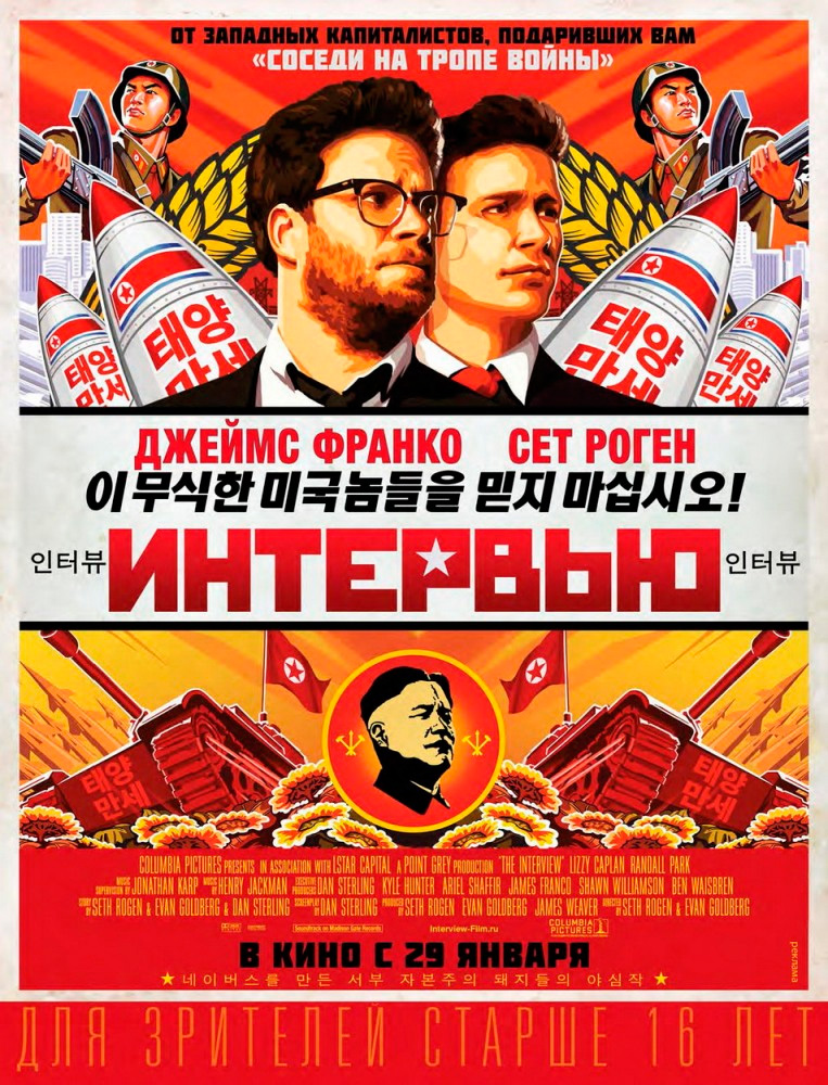 "Интервью", чисто заказуха ЦРУ, отмыть бабло под громкие имена дорогих артистов. Видно Сета и Франко реально взяли за жопу с наркотой, вот и сыграли в чём попросили. Сидеть в тюрьме никому не охота. И что тут можно увидеть? Шутки про анус и члены... Демоны чёртовы, помогли кому то в Штатах отгрохать пару домиков на побережье.